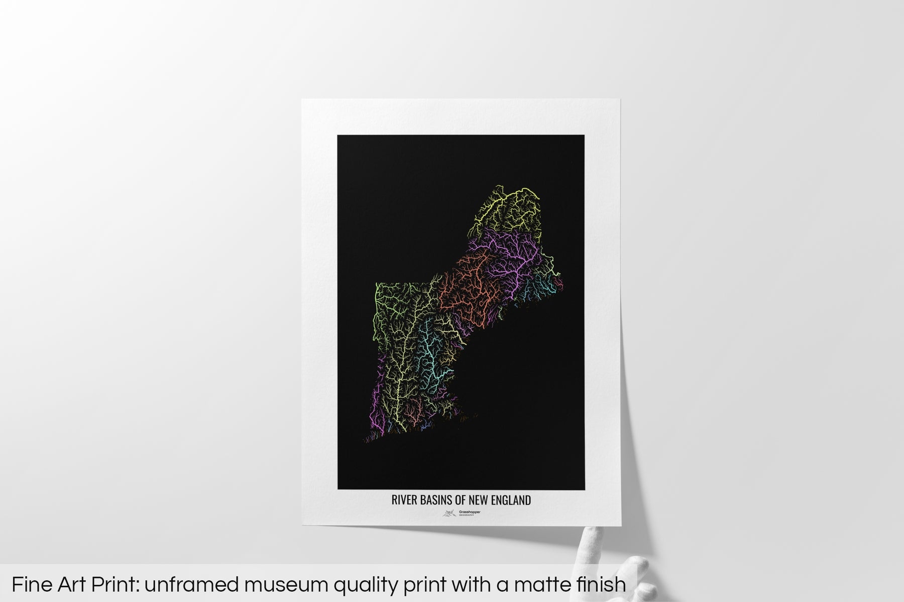 High resolution river basin map, showing each catchment area in a different colour. Thanks to its soft pastel tones the map fits well into most interiors.