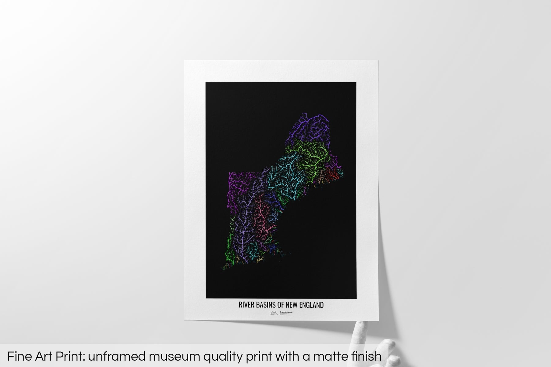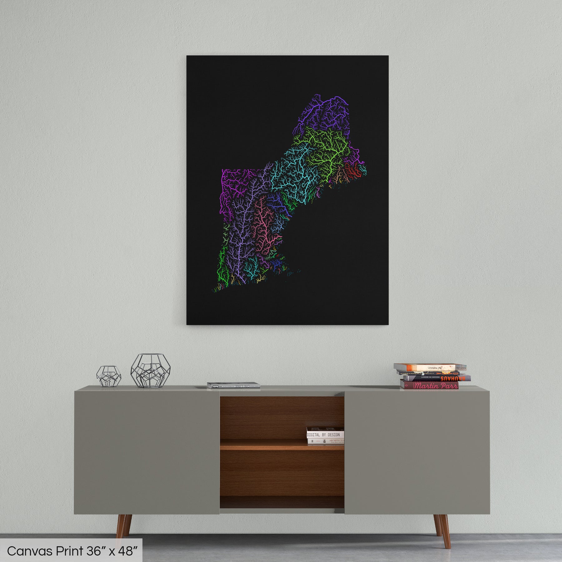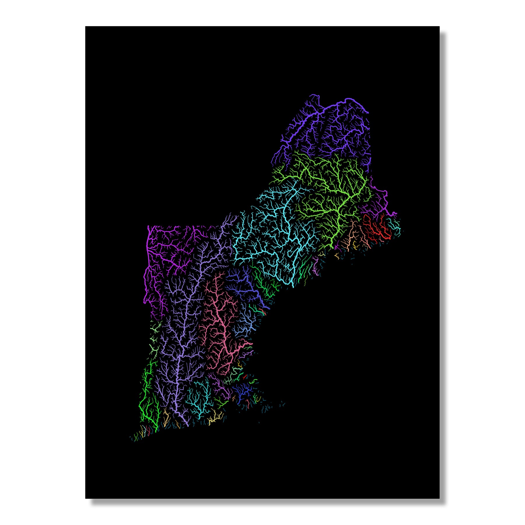 This high-resolution river basin map shows each catchment area in a different colour. Its vibrant colour scheme makes this map a lively addition to any space.