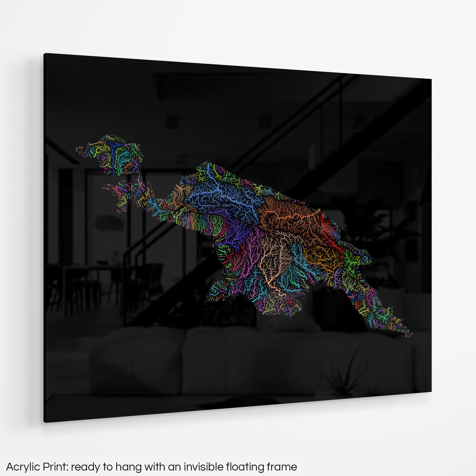The fine art Giclée print is hand mounted onto a 10mm thick, premium polished, high-gloss acrylic glass that results in a vibrant finish. The transparency of the acrylic enhances the colours and details of the artwork, creating a stunning visual effect that will make a bold statement in any space.
