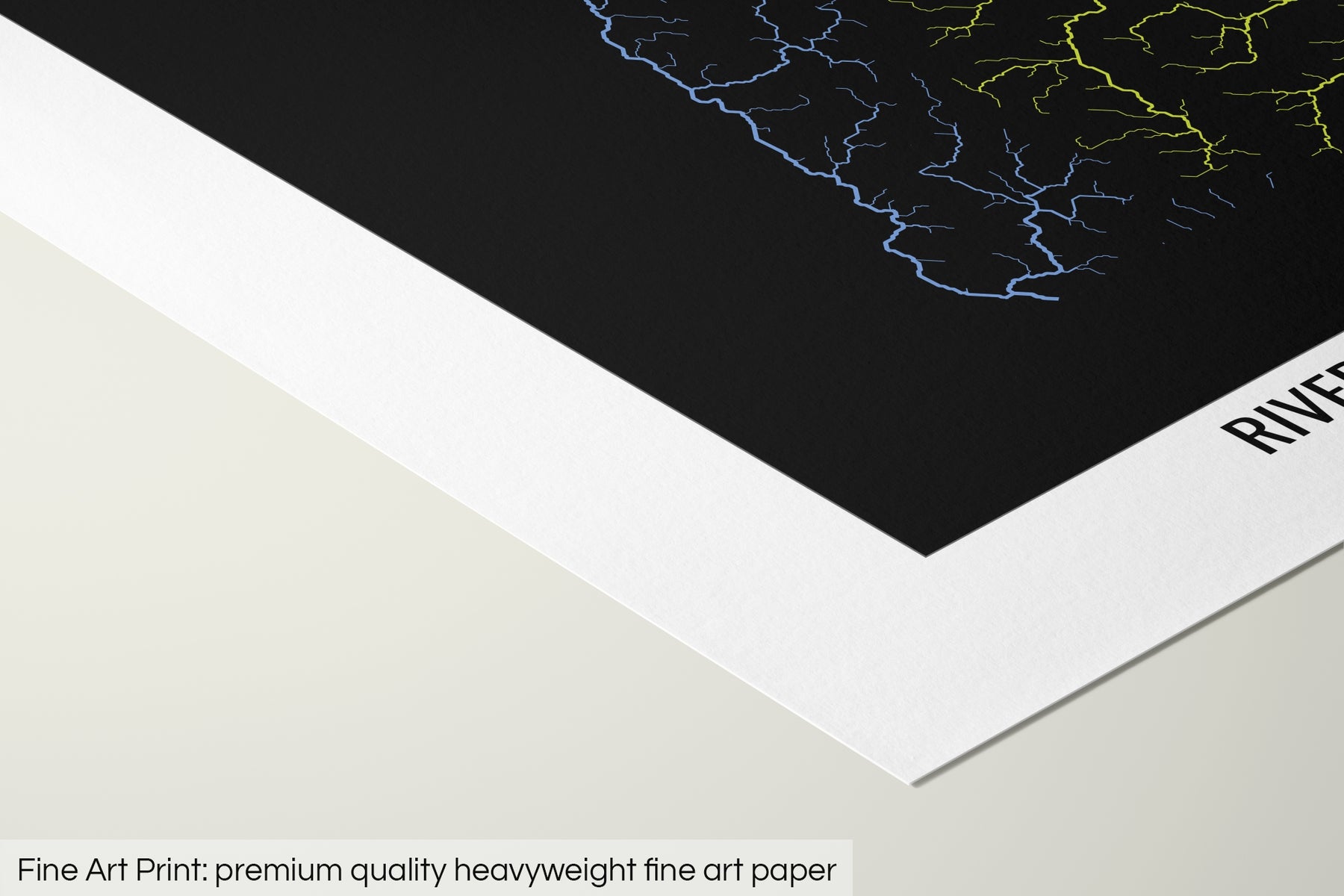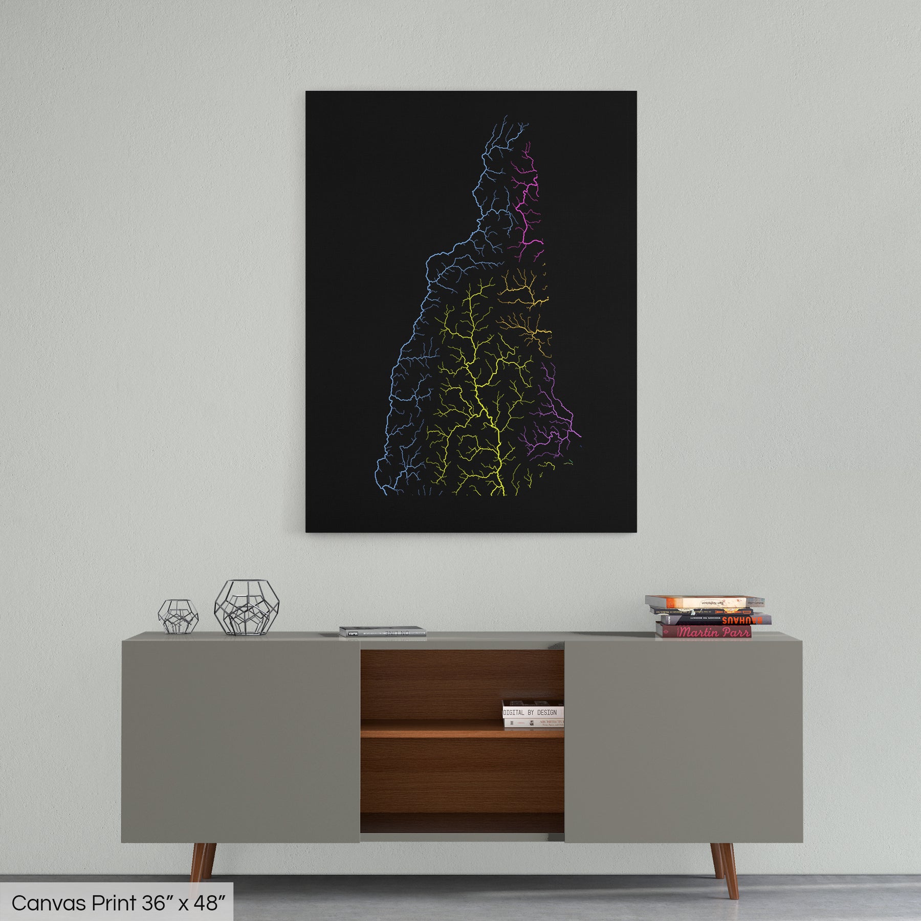 New Hampshire - River basin map, rainbow colours - Wall Art