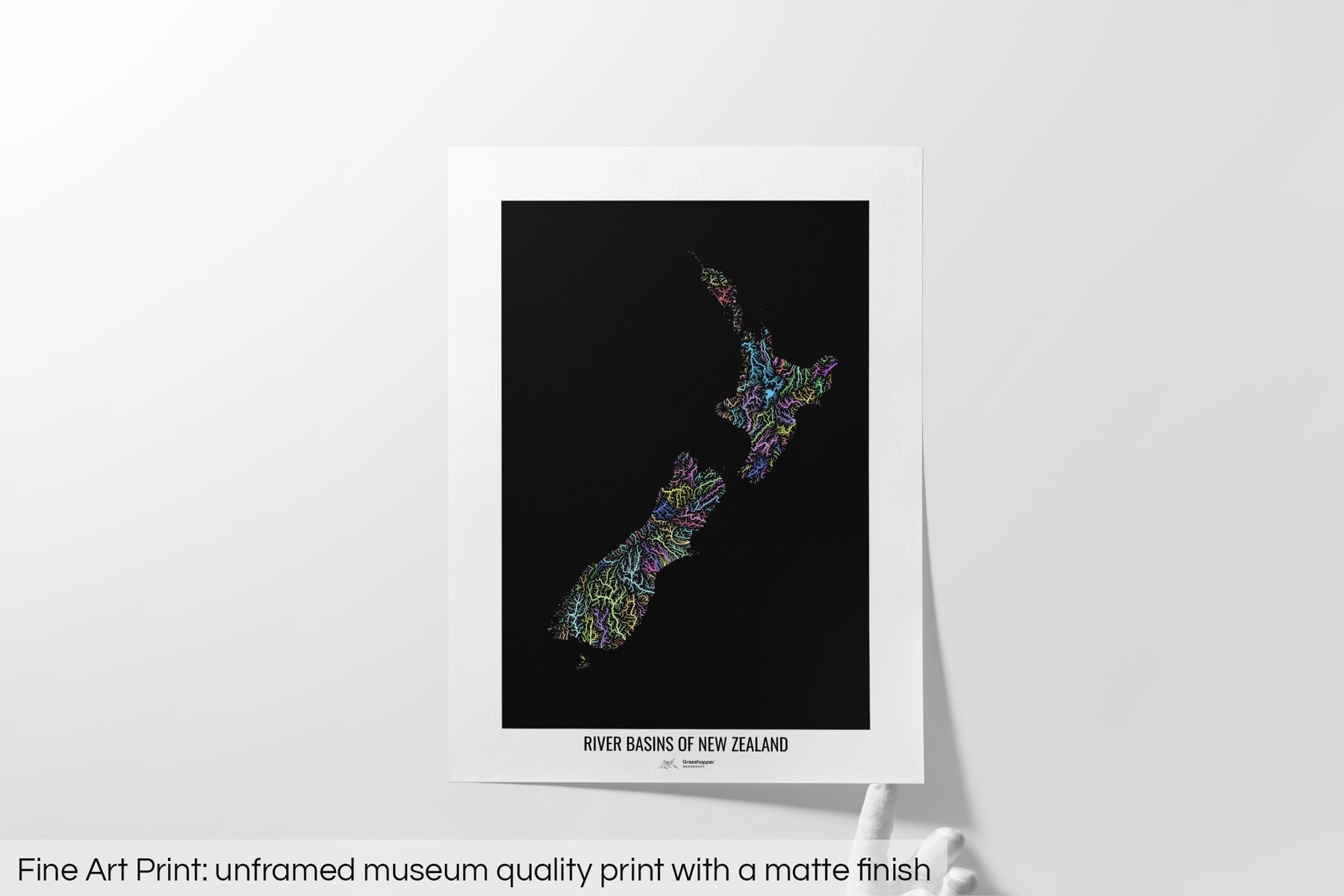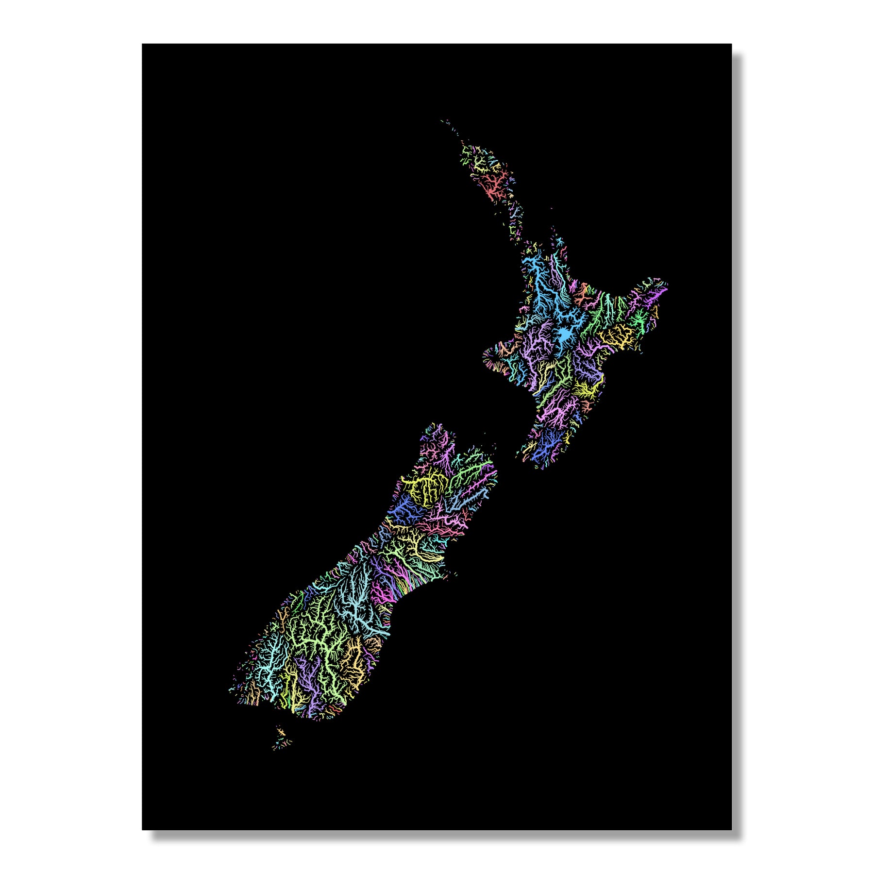 High resolution river basin map, showing each catchment area in a different colour. Thanks to its soft pastel tones the map fits well into most interiors.