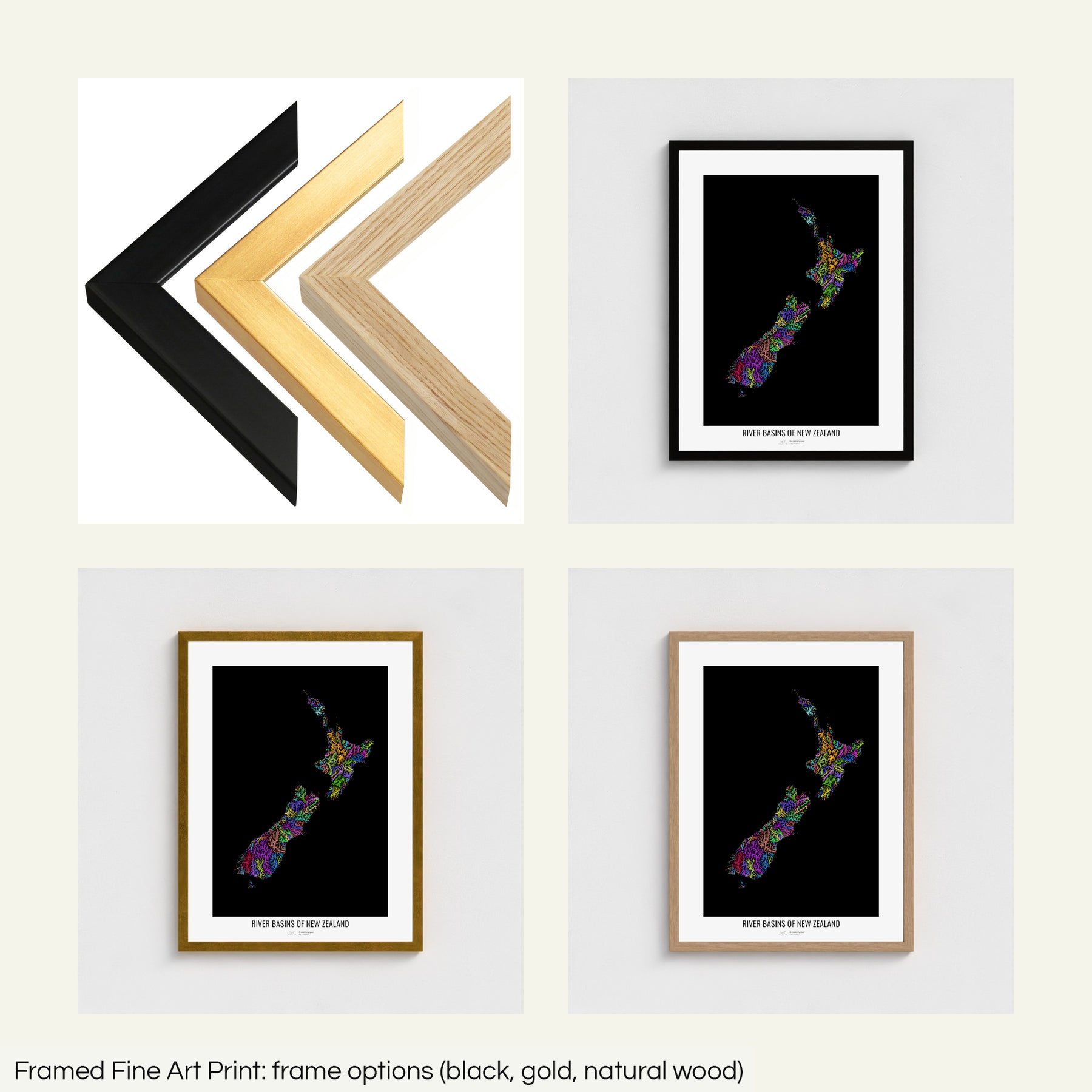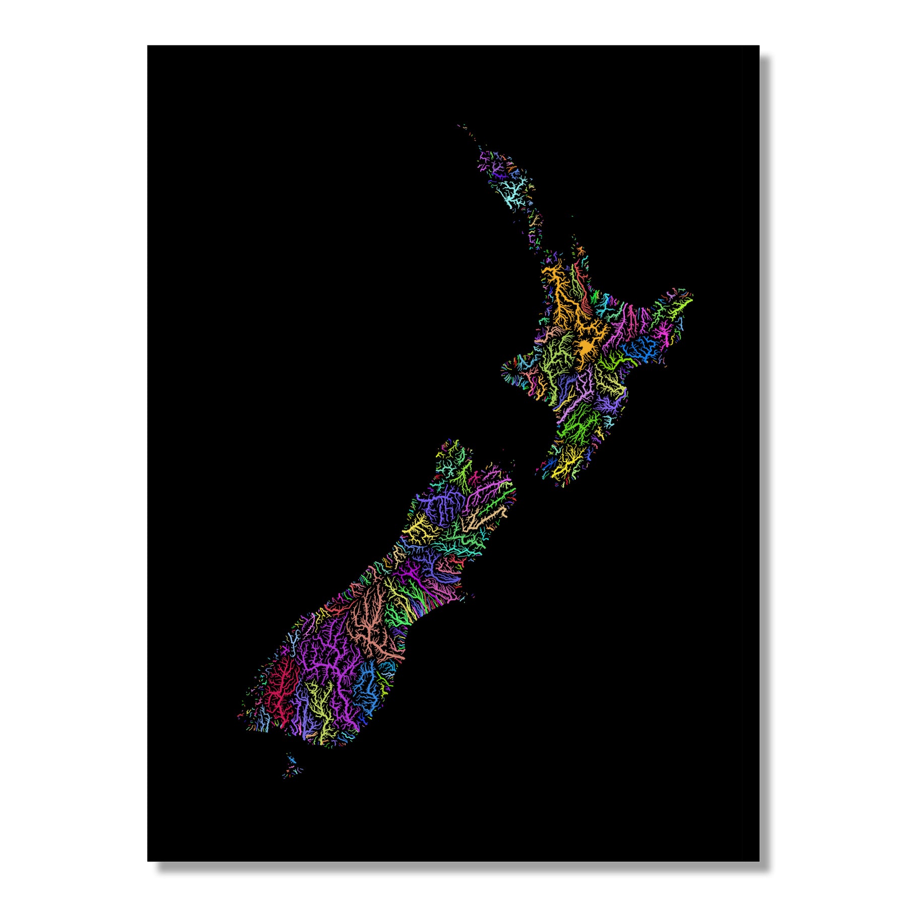 New Zealand - River basin map, rainbow colours - Wall Art