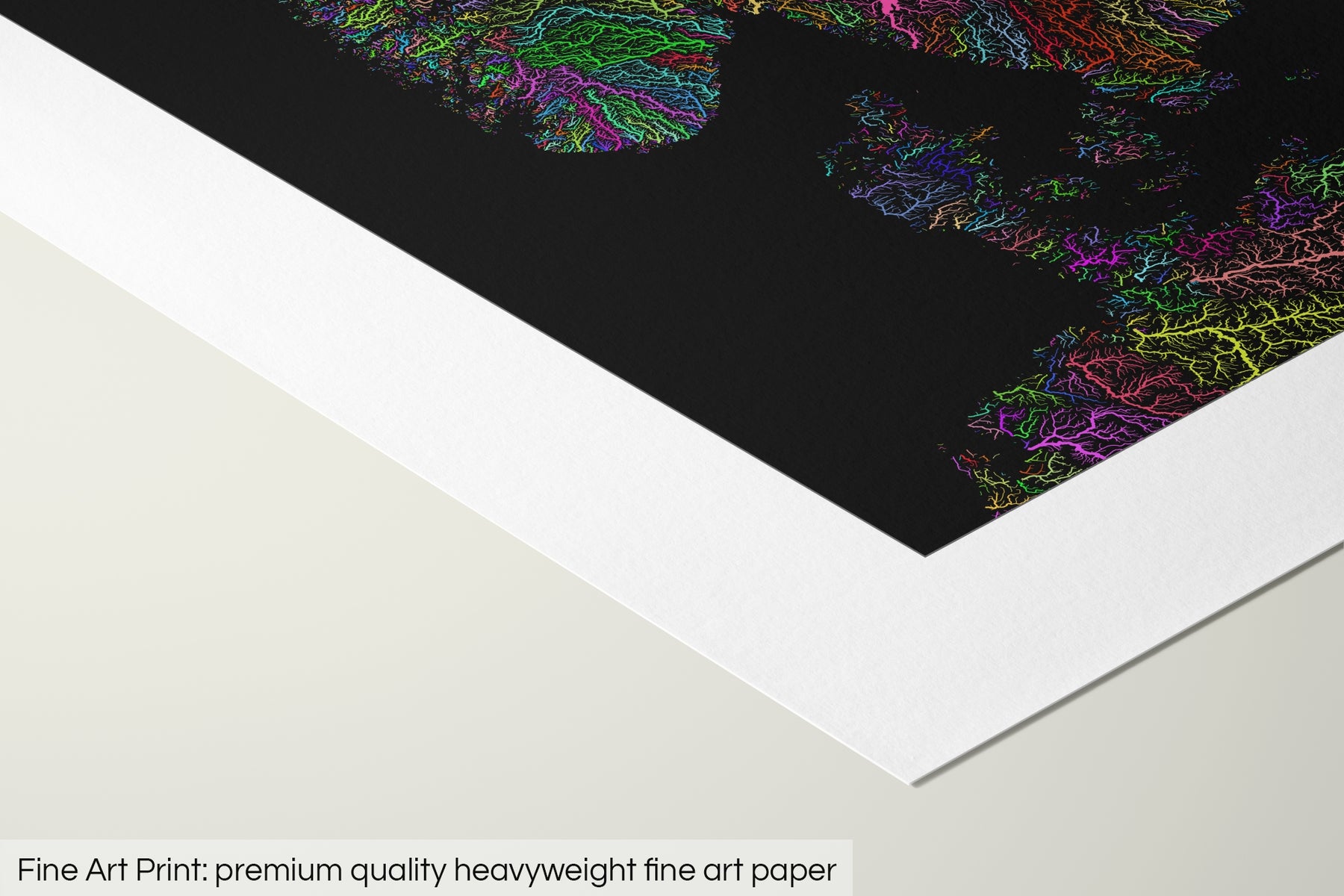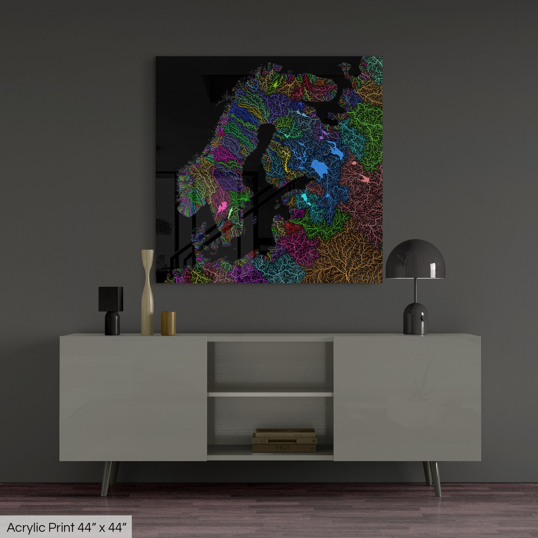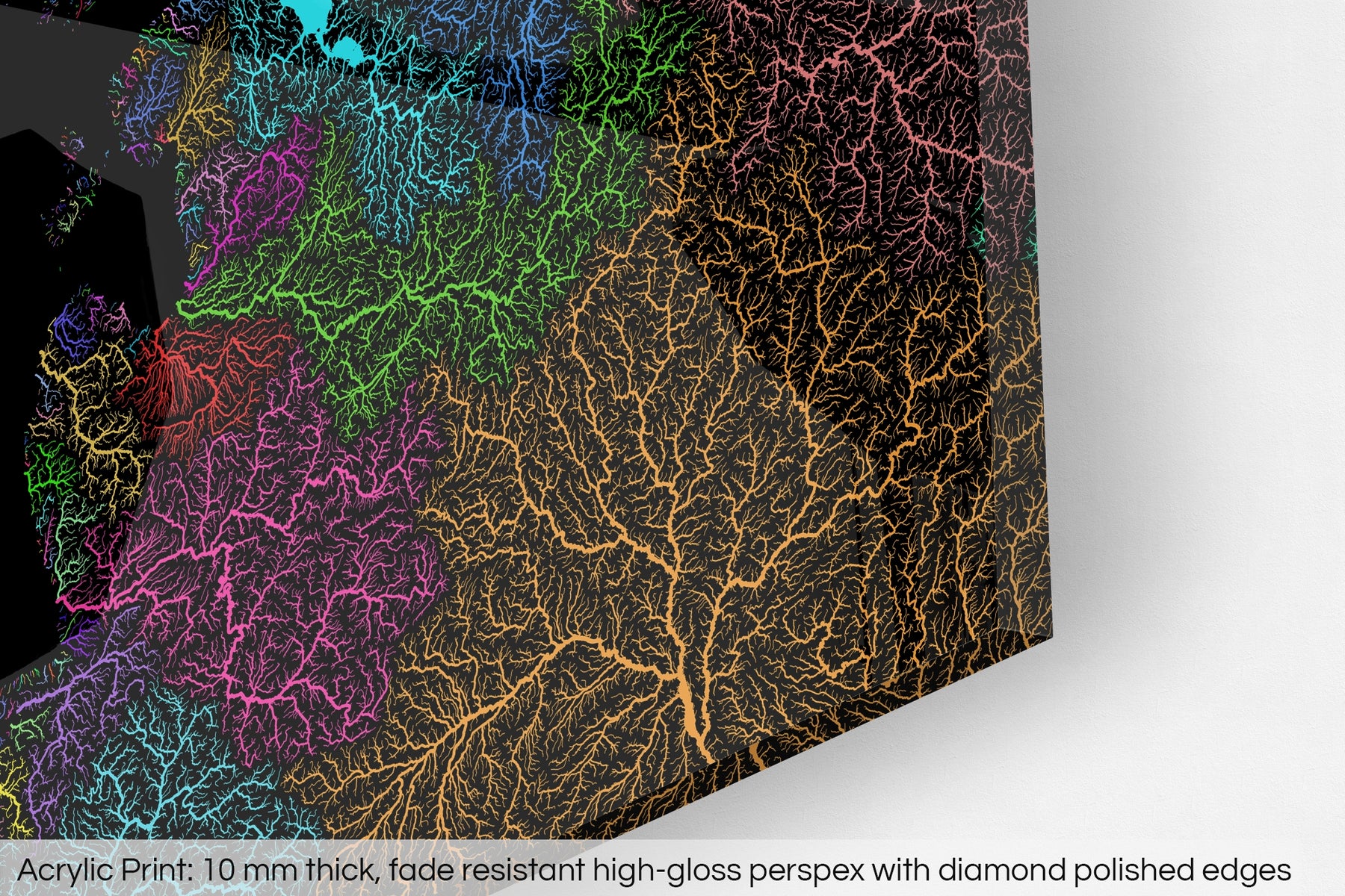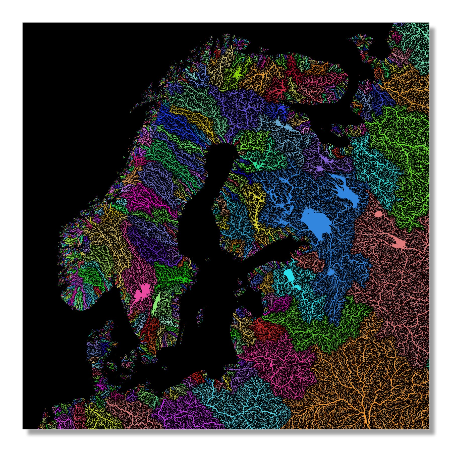 Northern Europe - River basin map, rainbow colours - Wall Art