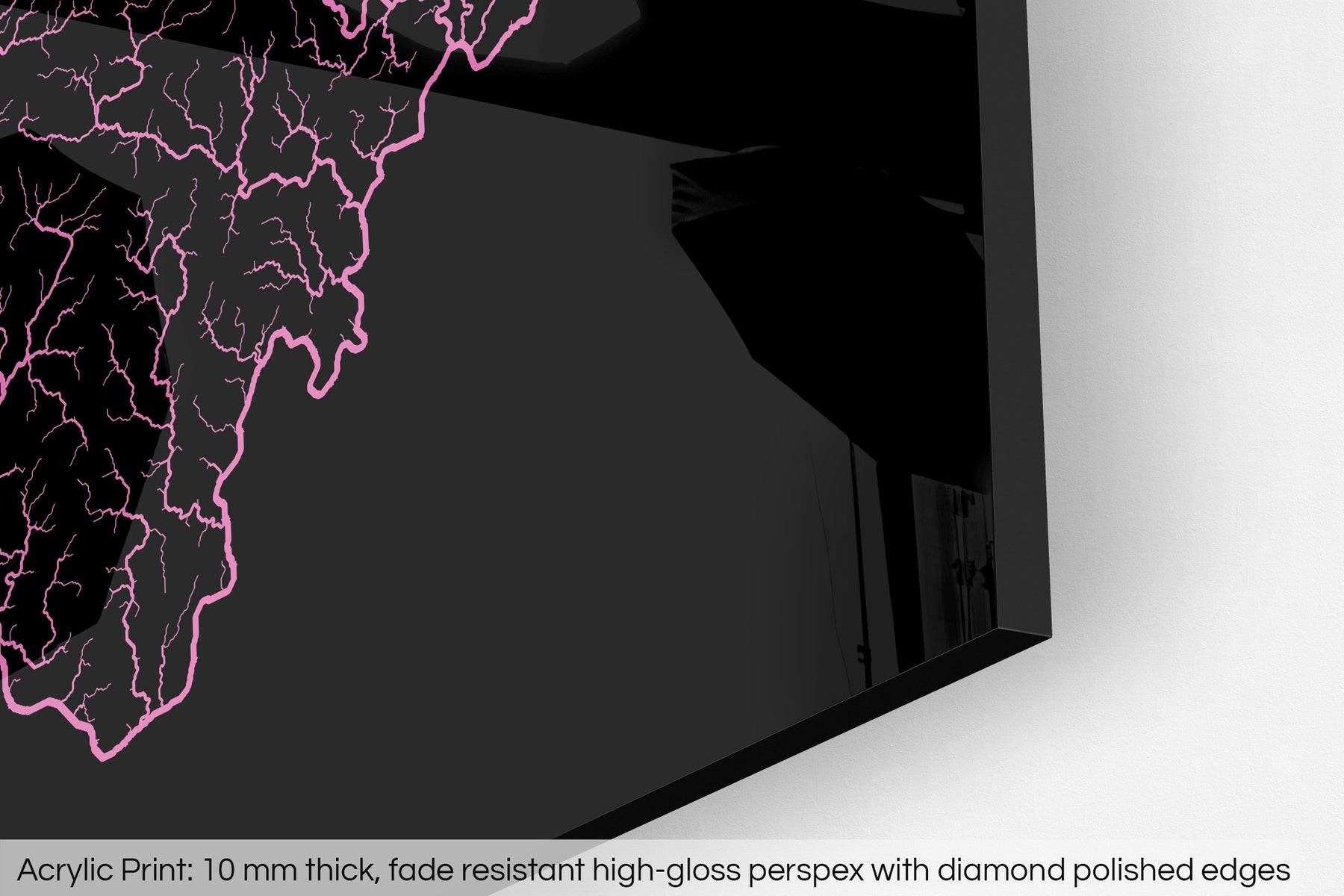 A fine art Giclée print is hand mounted onto 10mm thick high-gloss acrylic perspex that will protect your map from harmful UV light, keeping colours fresh and vivid for years to come.