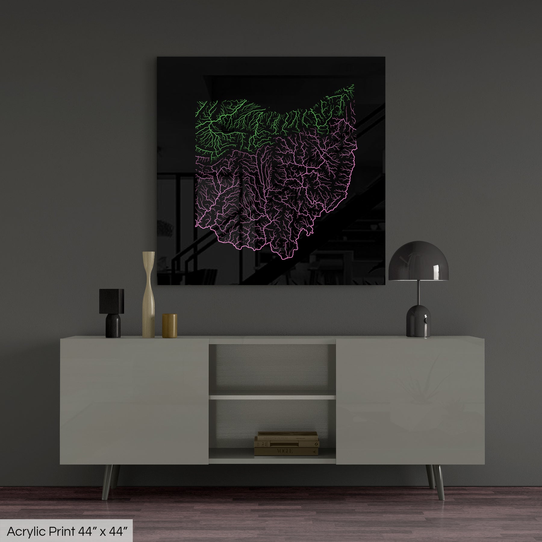 A frame free wall art option that creates a dramatic focal point for any wall. The 3D luminosity of the polished surface brings our maps to life with vibrant colors that will meet the highest expectations.