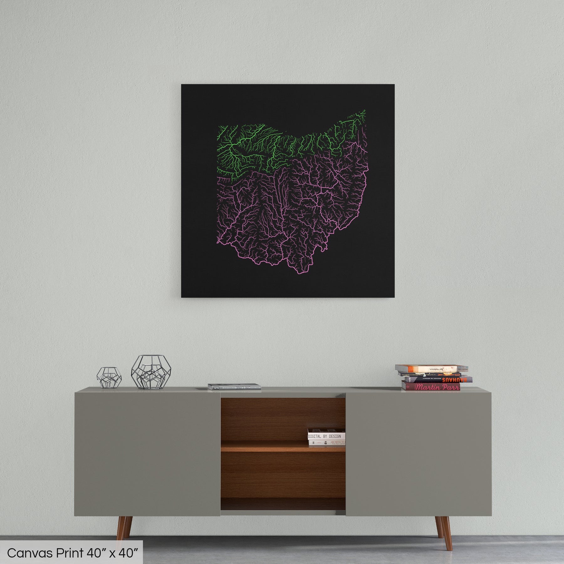 Ohio - River basin map, rainbow colours - Wall Art