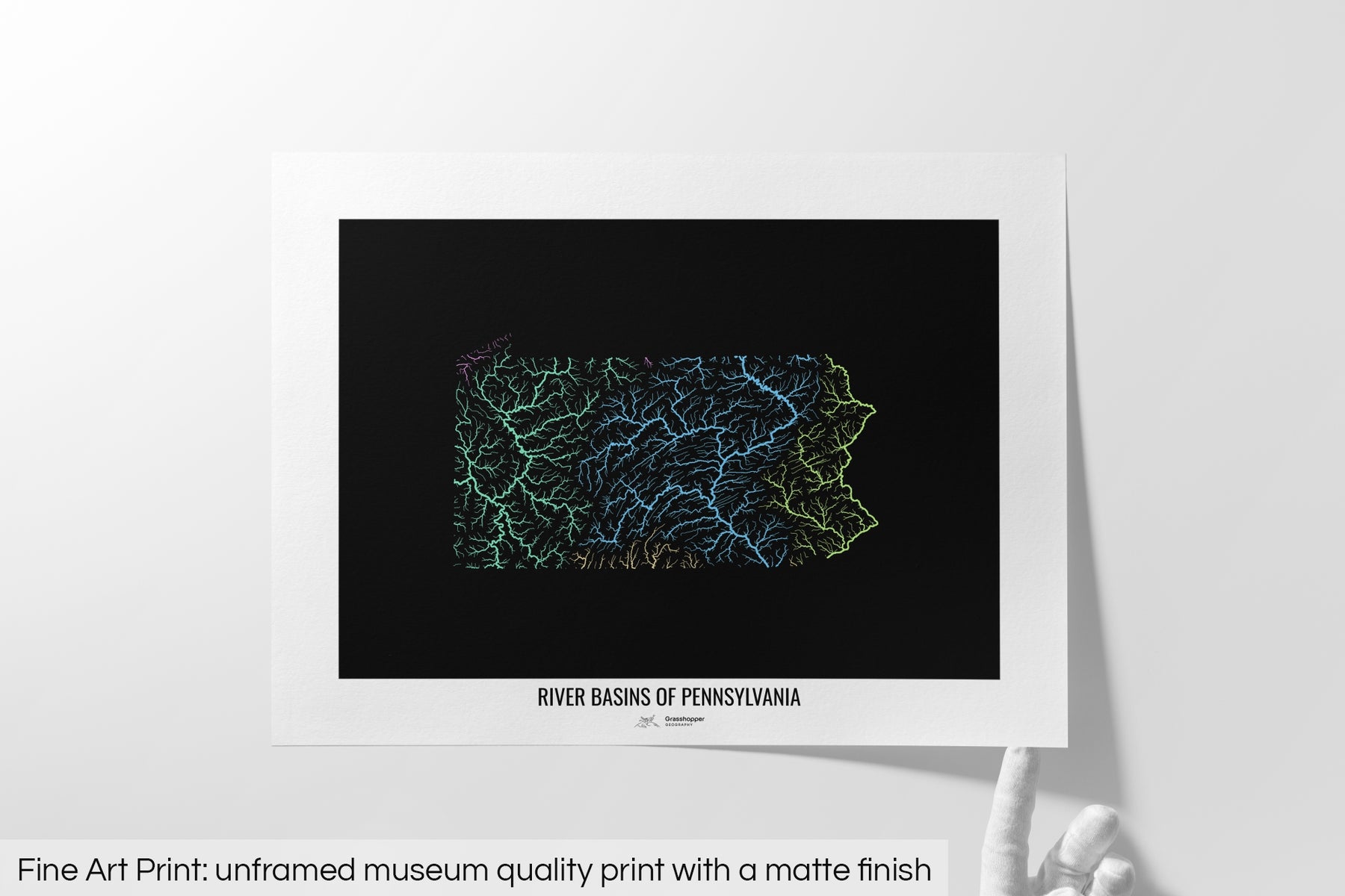 Pennsylvania - River basin map, pastel colours - Wall Art
