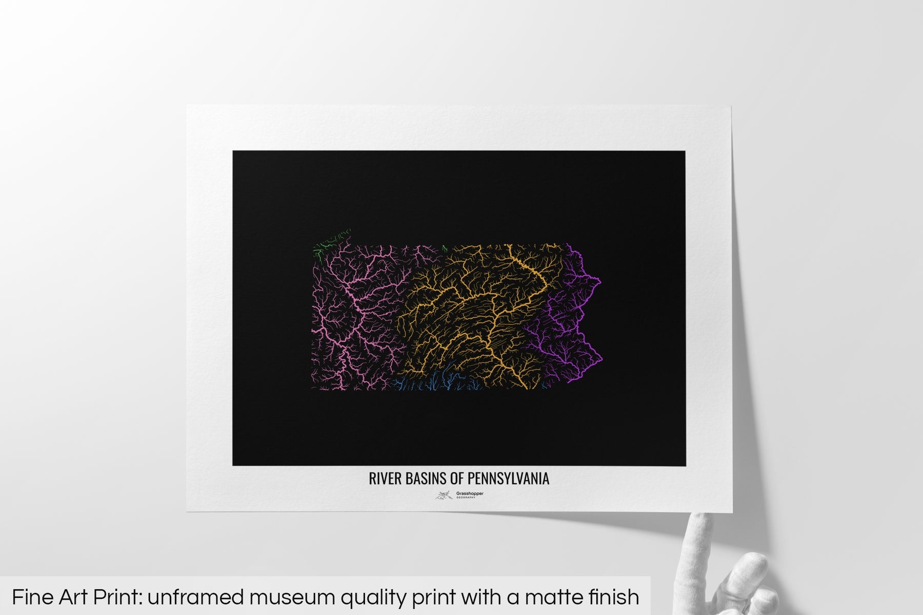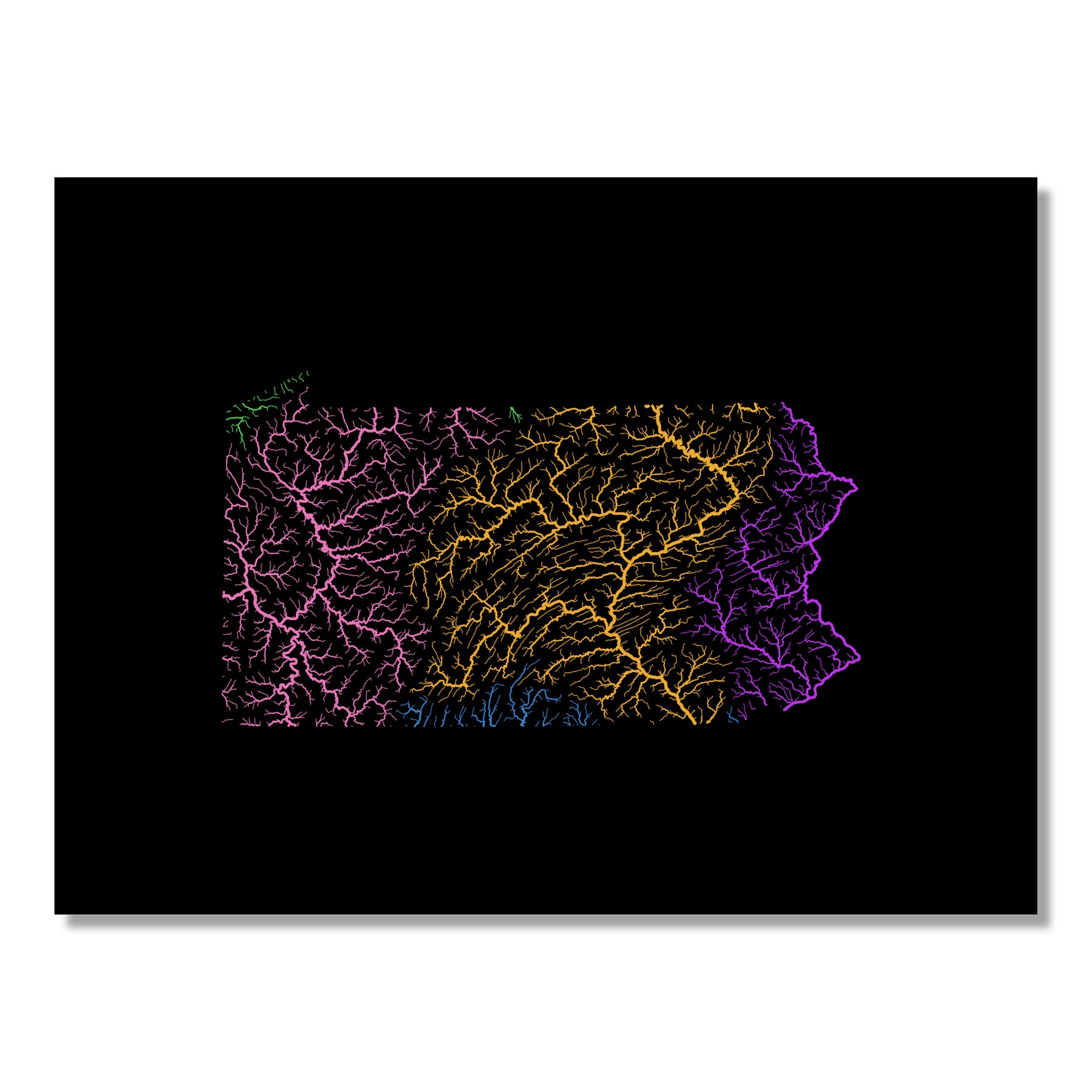 Pennsylvania - River basin map, rainbow colours - Wall Art