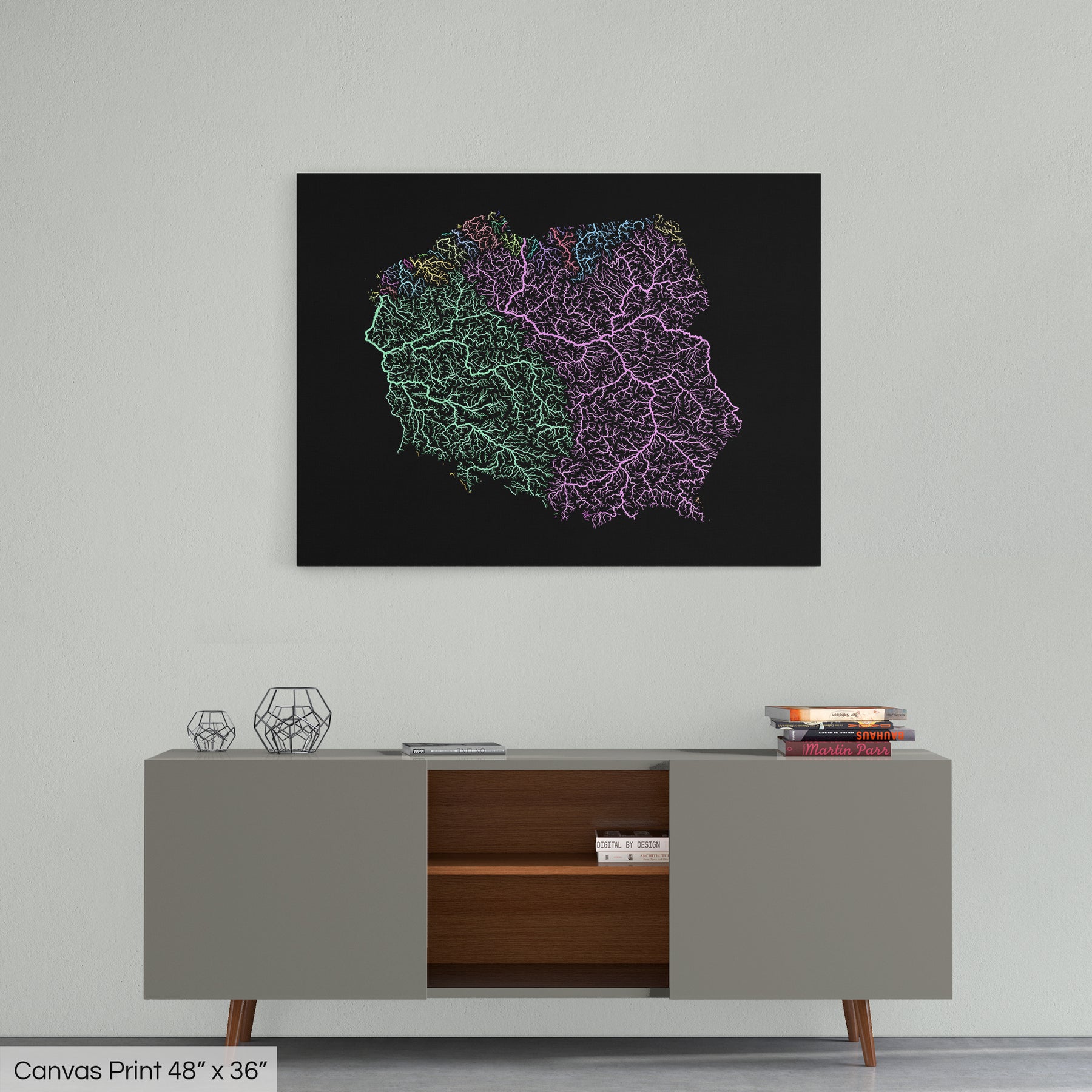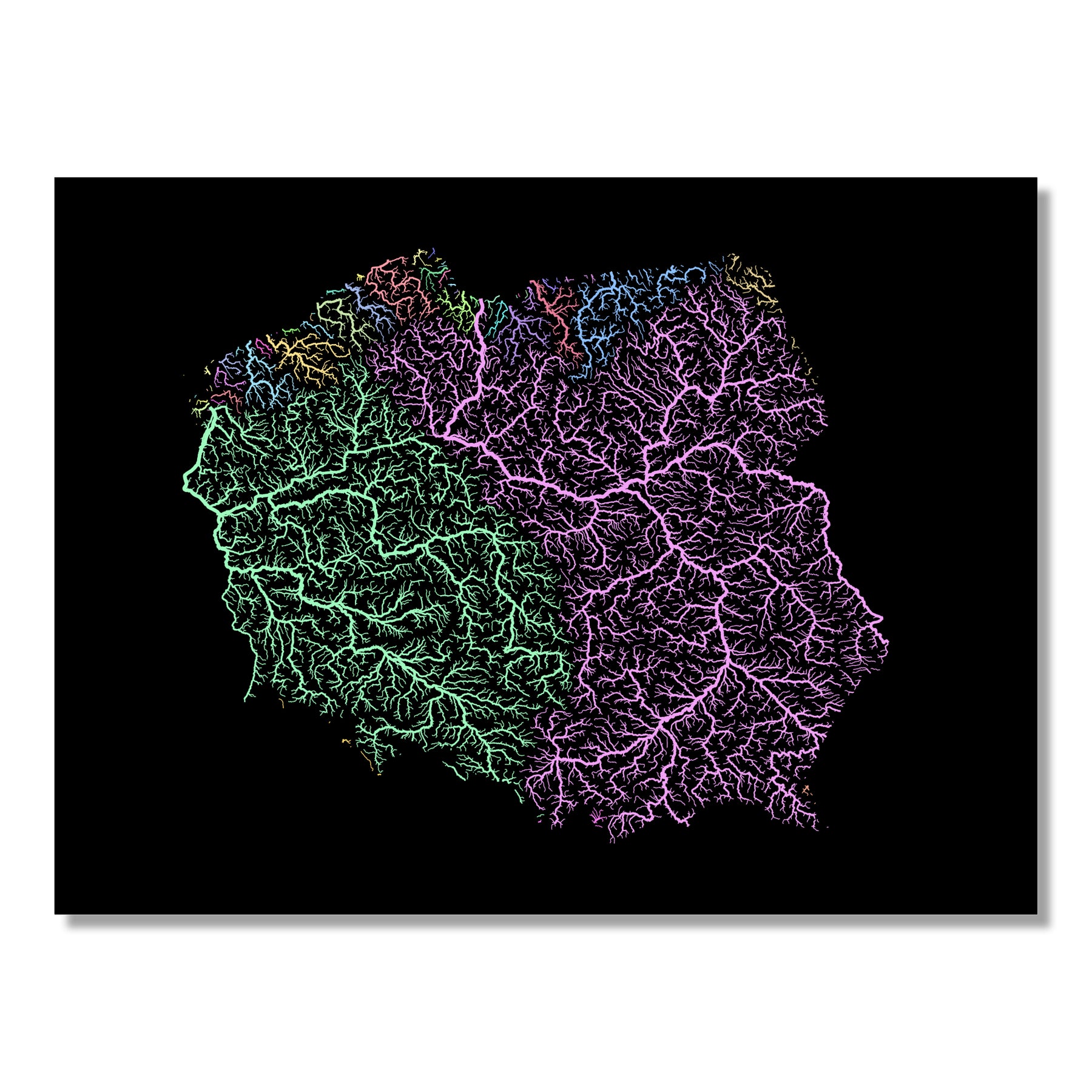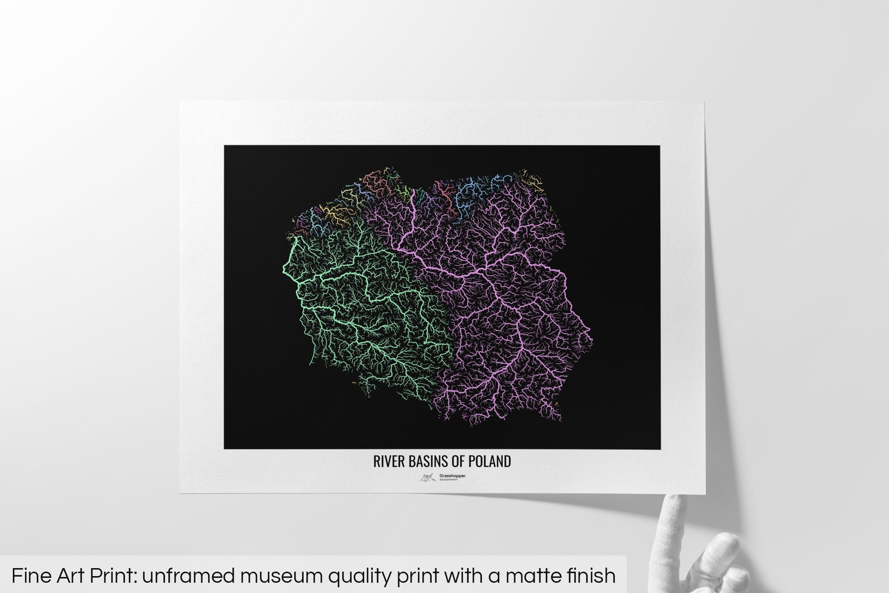 Poland - River basin map, pastel colours - Wall Art