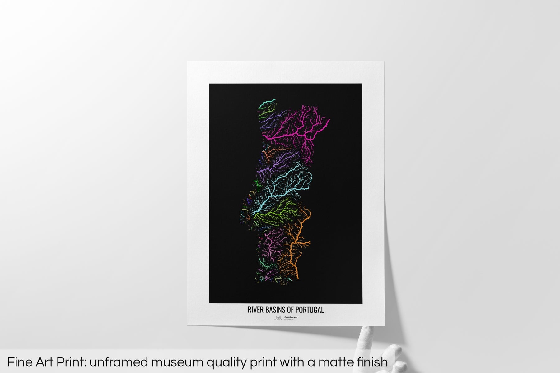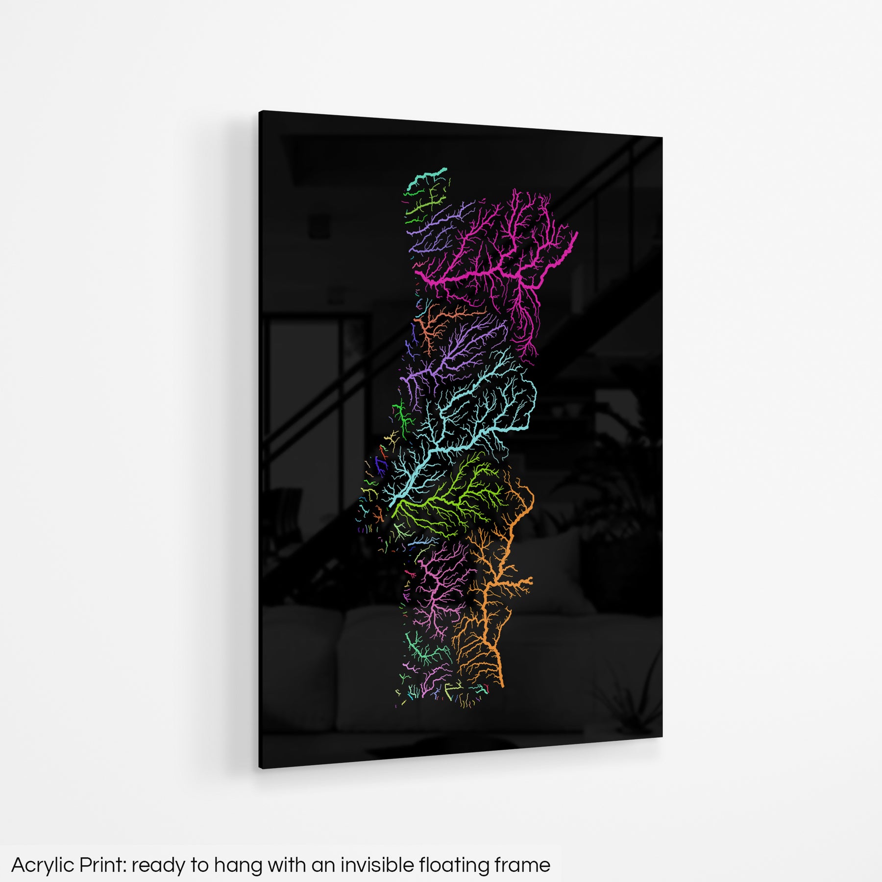 This high-resolution river basin map shows each catchment area in a different colour. Its vibrant colour scheme makes this map a lively addition to any space.