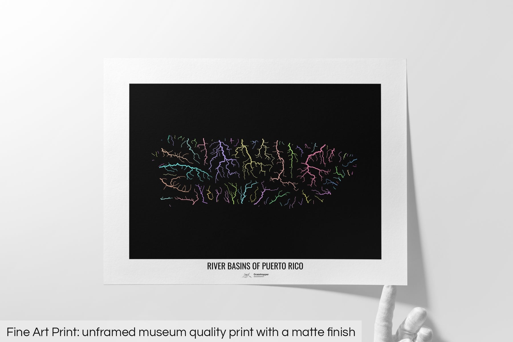 Puerto Rico - River basin map, pastel colours - Wall Art