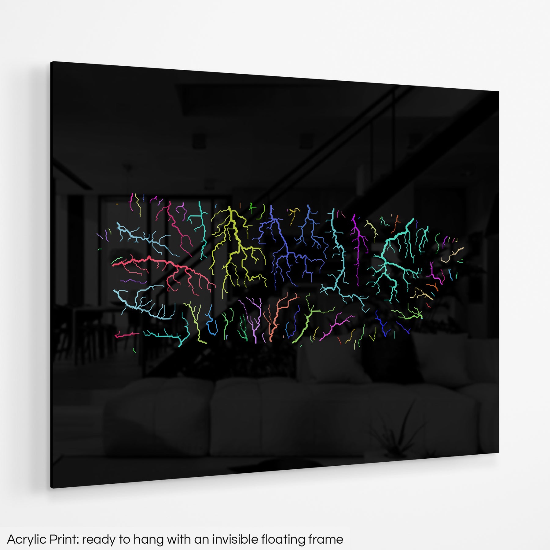 Puerto Rico - River basin map, rainbow colours - Wall Art