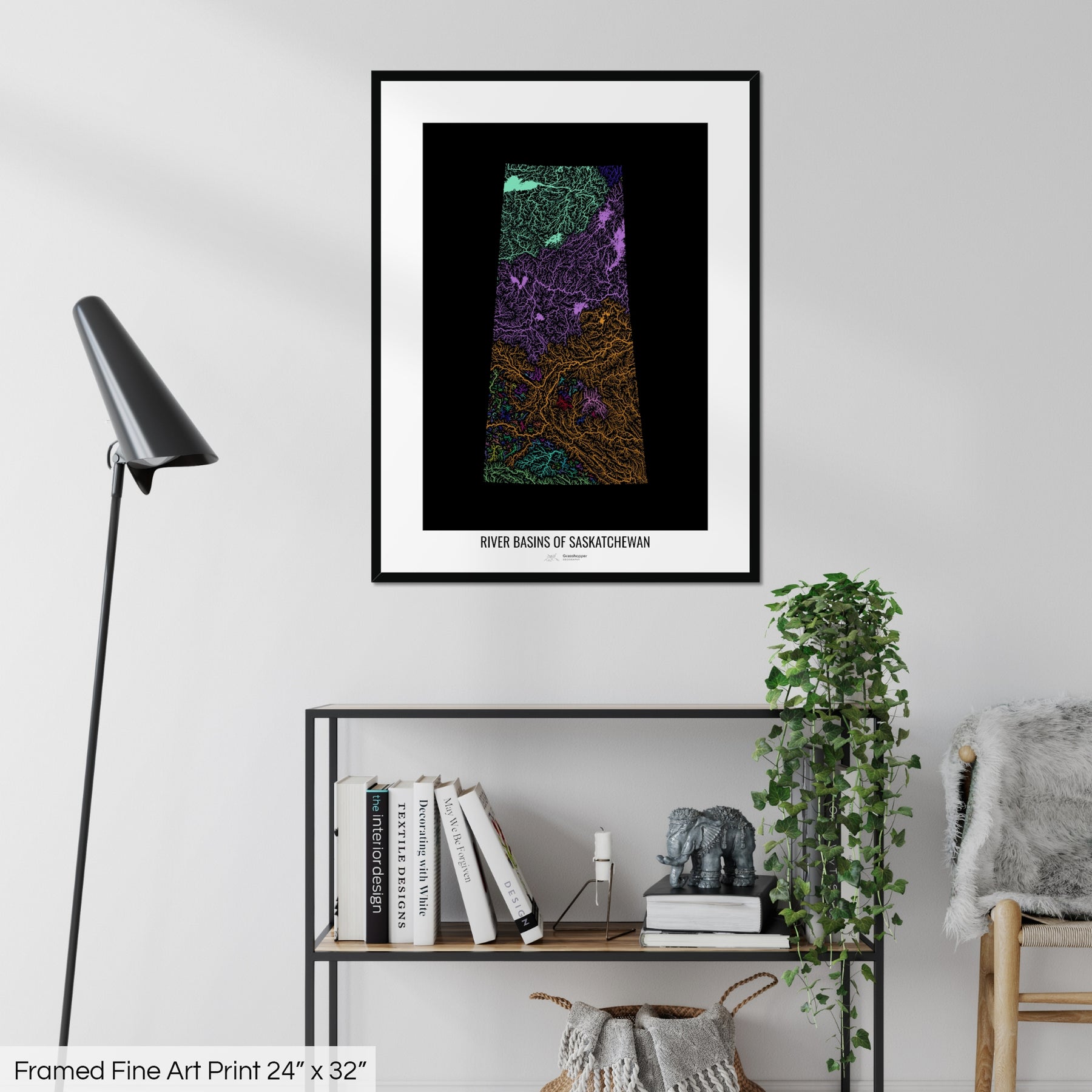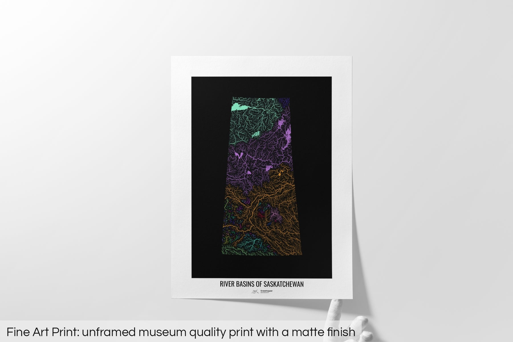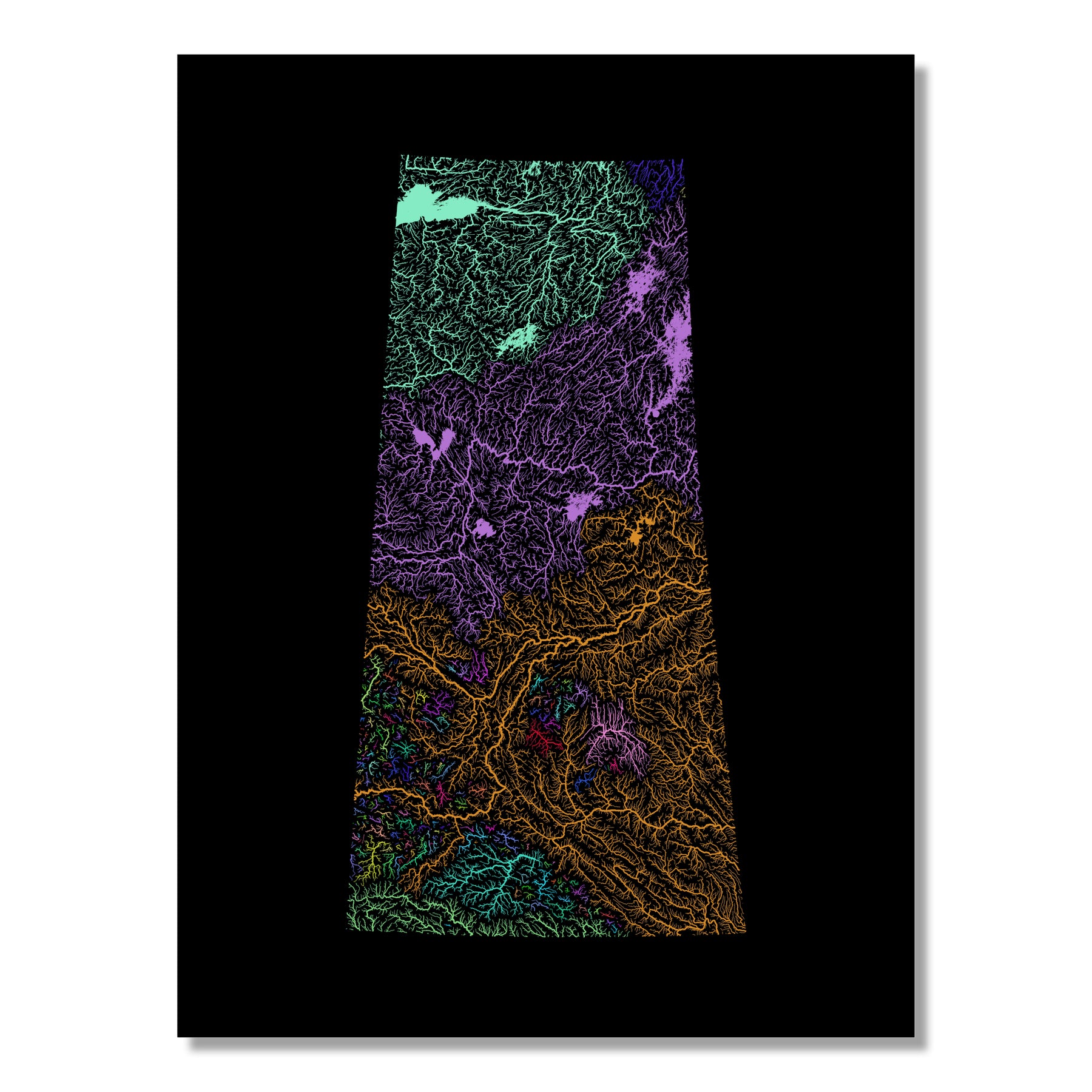 Saskatchewan - River basin map, rainbow colours - Wall Art