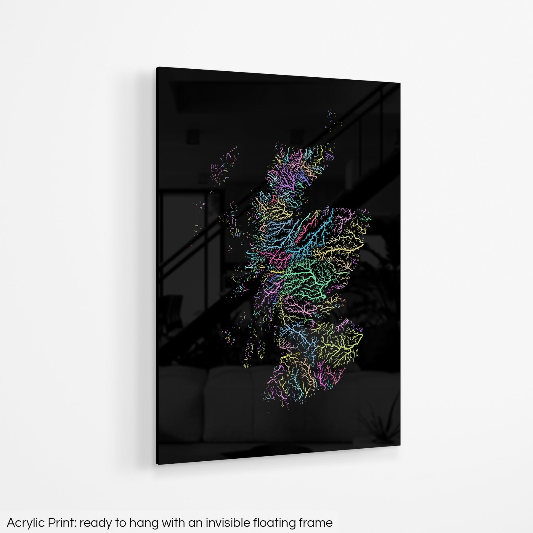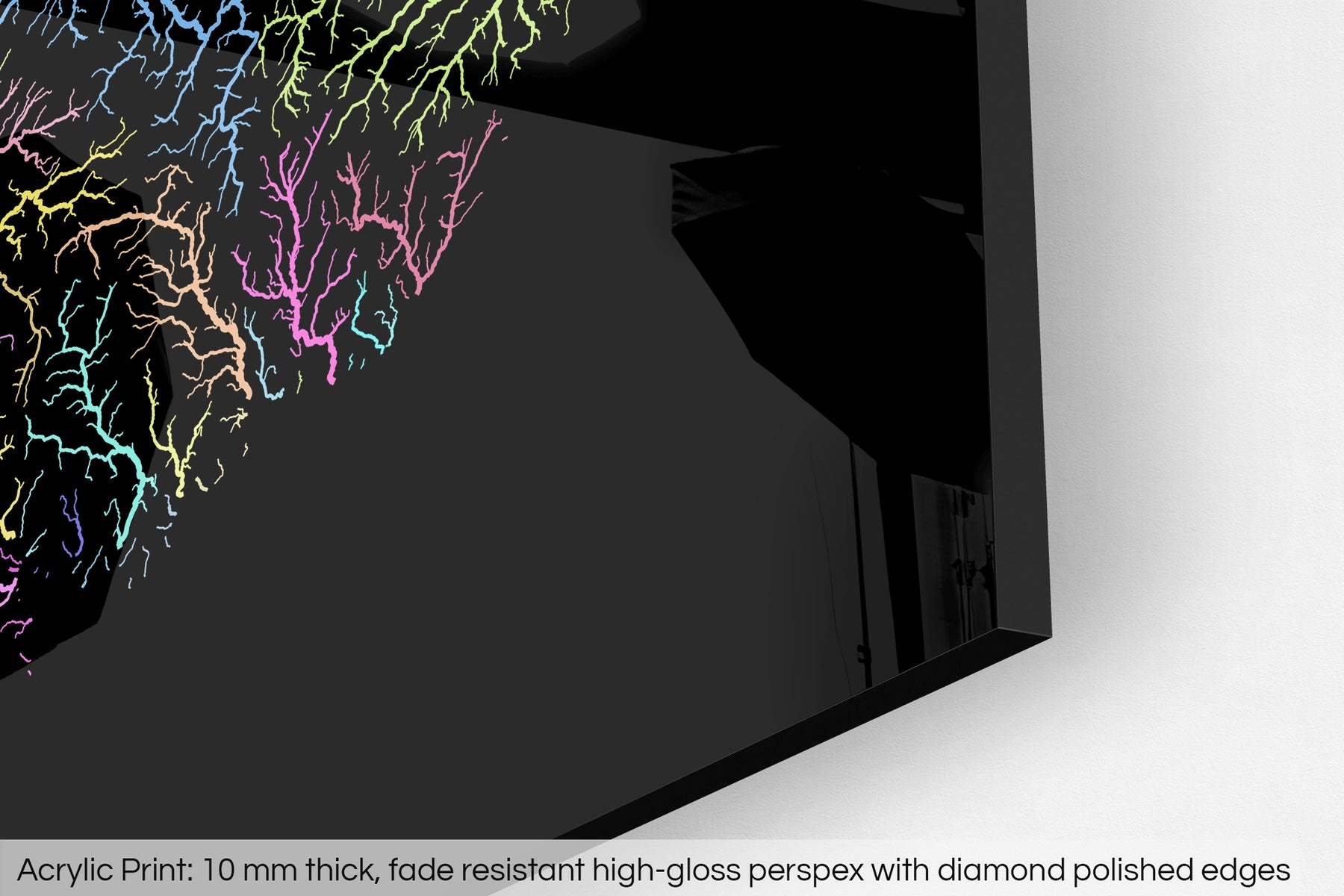 A fine art Giclée print is hand mounted onto 10mm thick high-gloss acrylic perspex that will protect your map from harmful UV light, keeping colours fresh and vivid for years to come.
