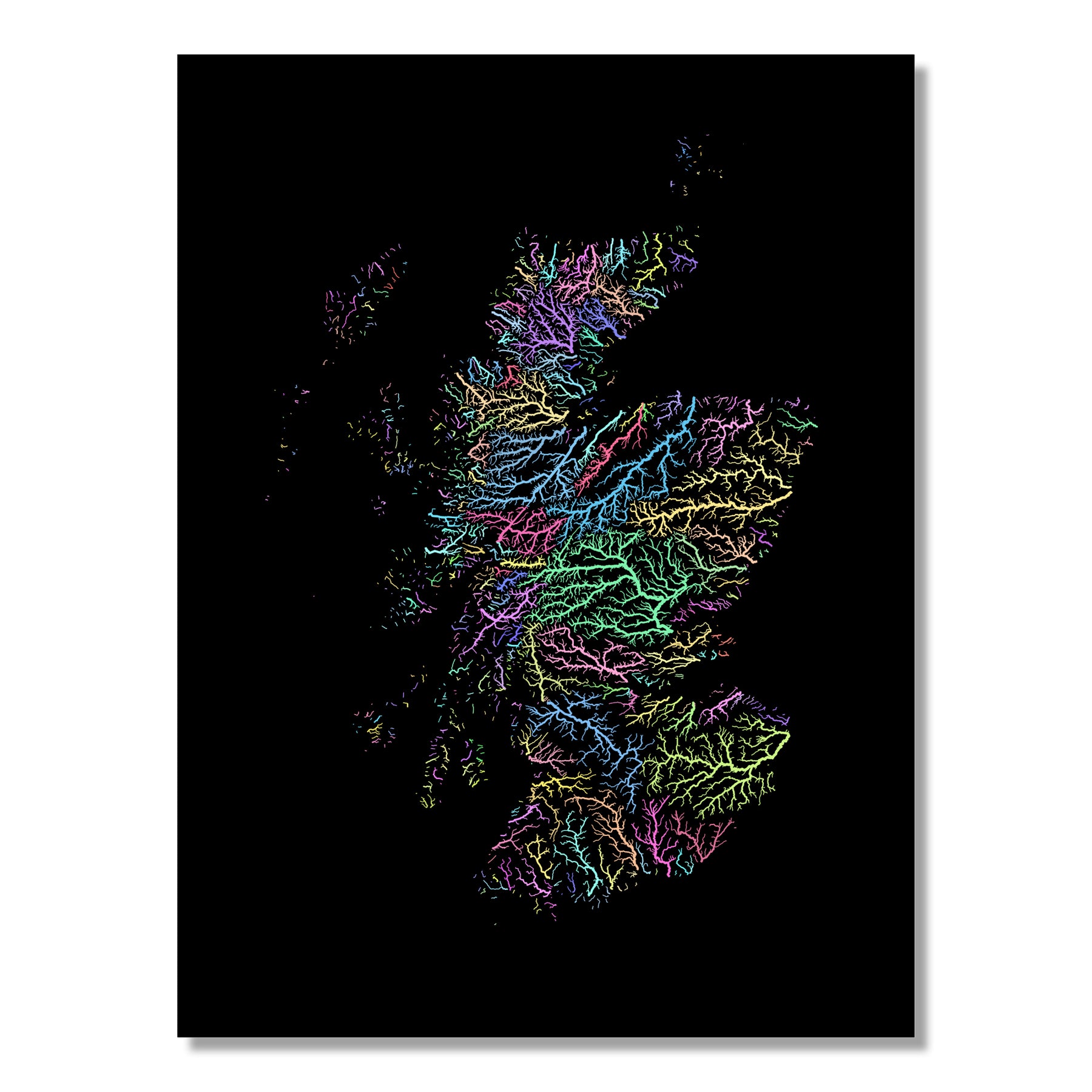 Scotland - River basin map, pastel colours - Wall Art