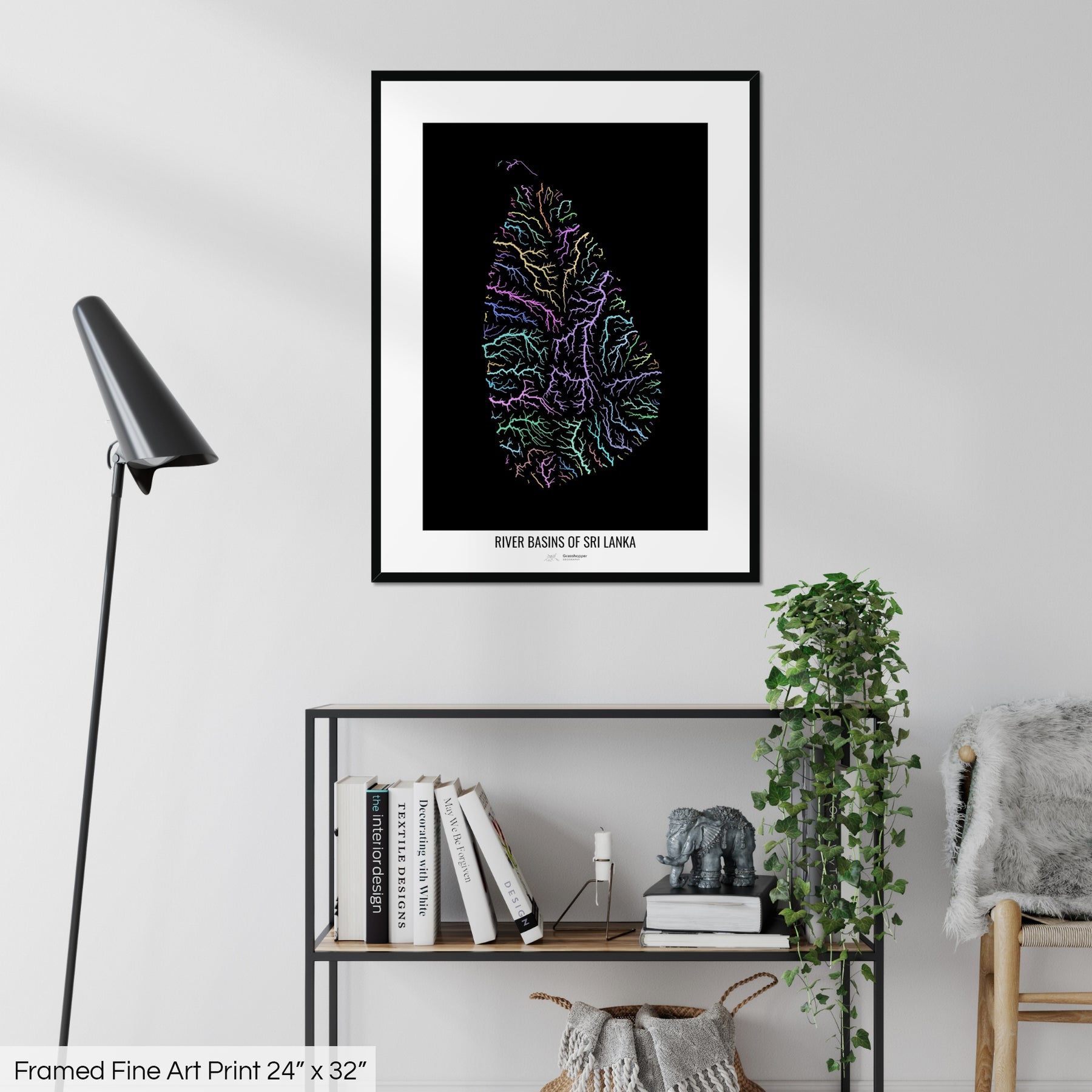 Sri Lanka - River basin map, pastel colours - Wall Art