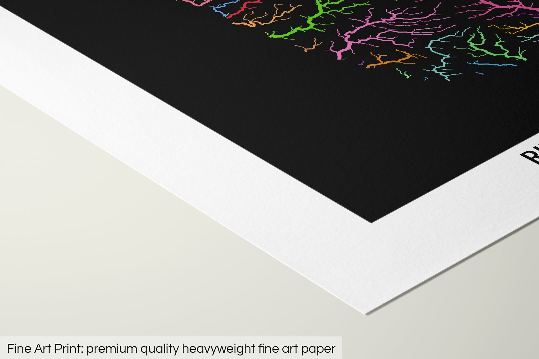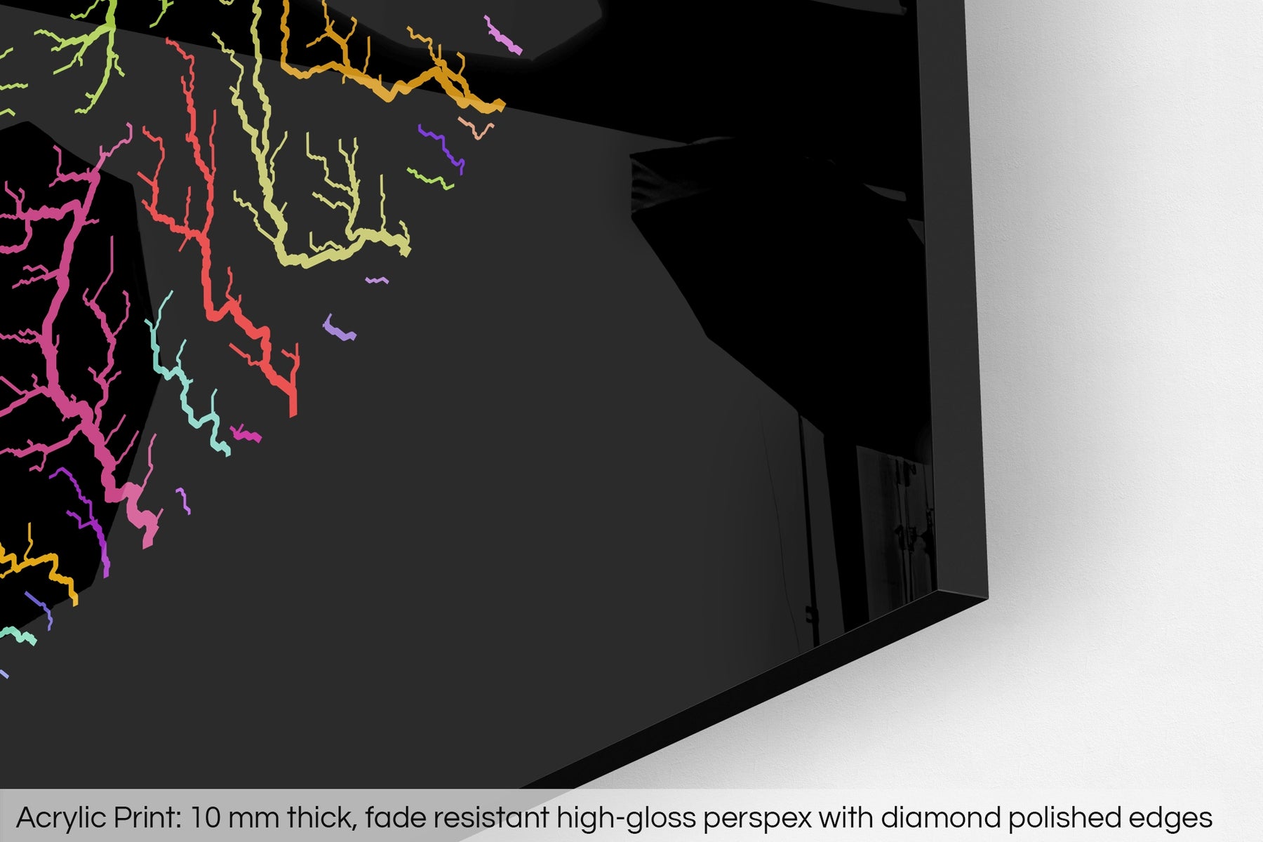 Sri Lanka - River basin map, rainbow colours - Wall Art