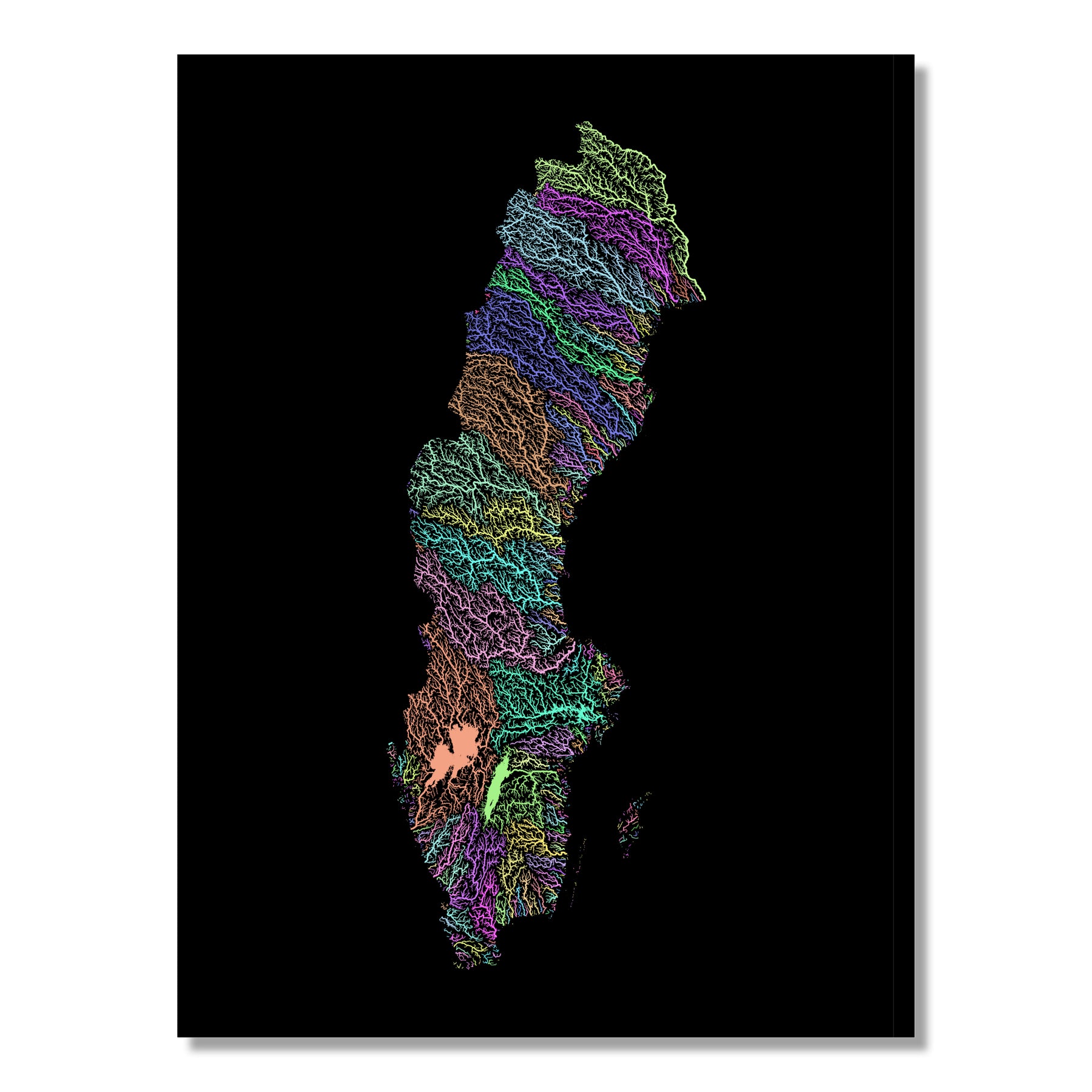 Sweden - River basin map, pastel colours - Wall Art