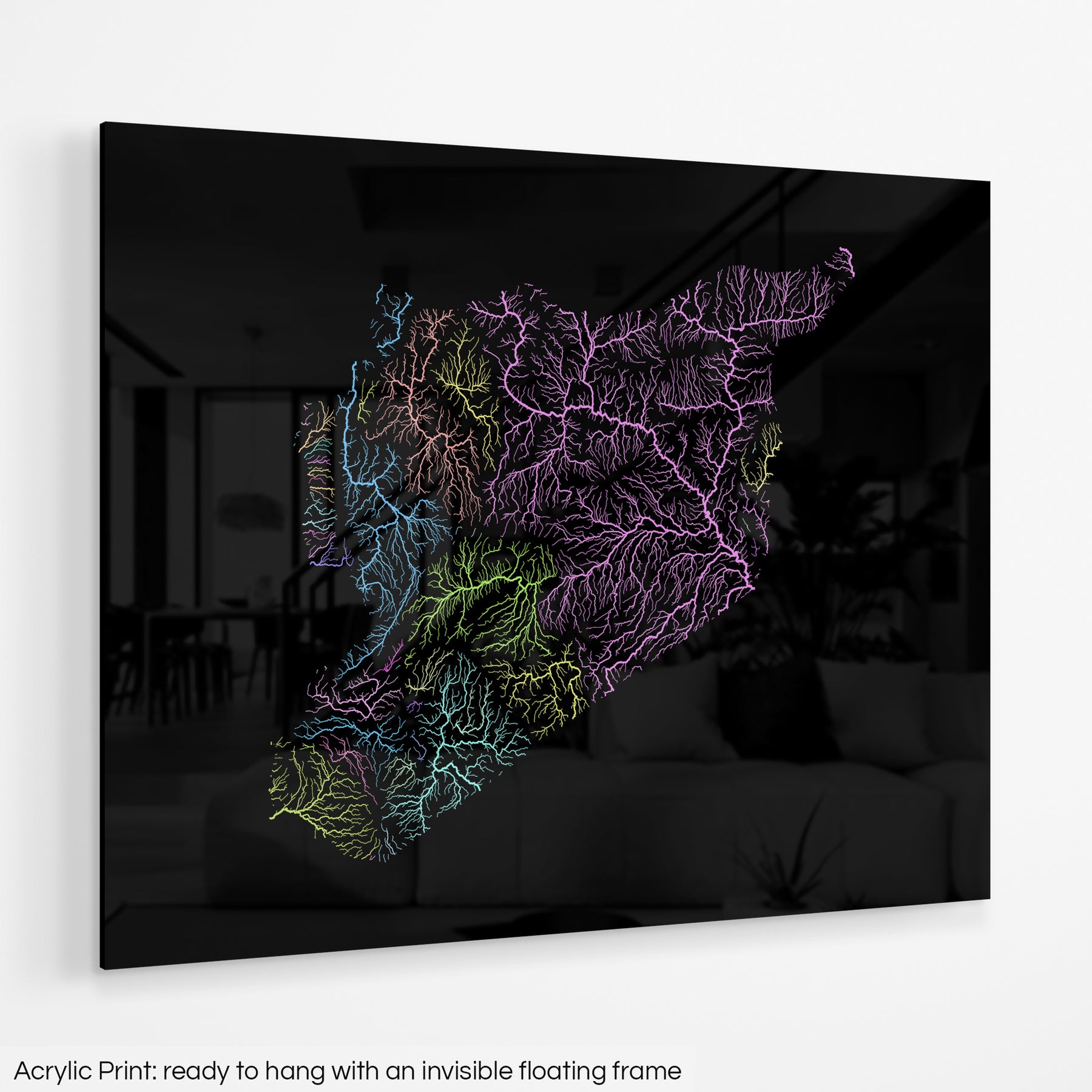 The fine art Giclée print is hand mounted onto a 10mm thick, premium polished, high-gloss acrylic glass that results in a vibrant finish. The transparency of the acrylic enhances the colours and details of the artwork, creating a stunning visual effect that will make a bold statement in any space.