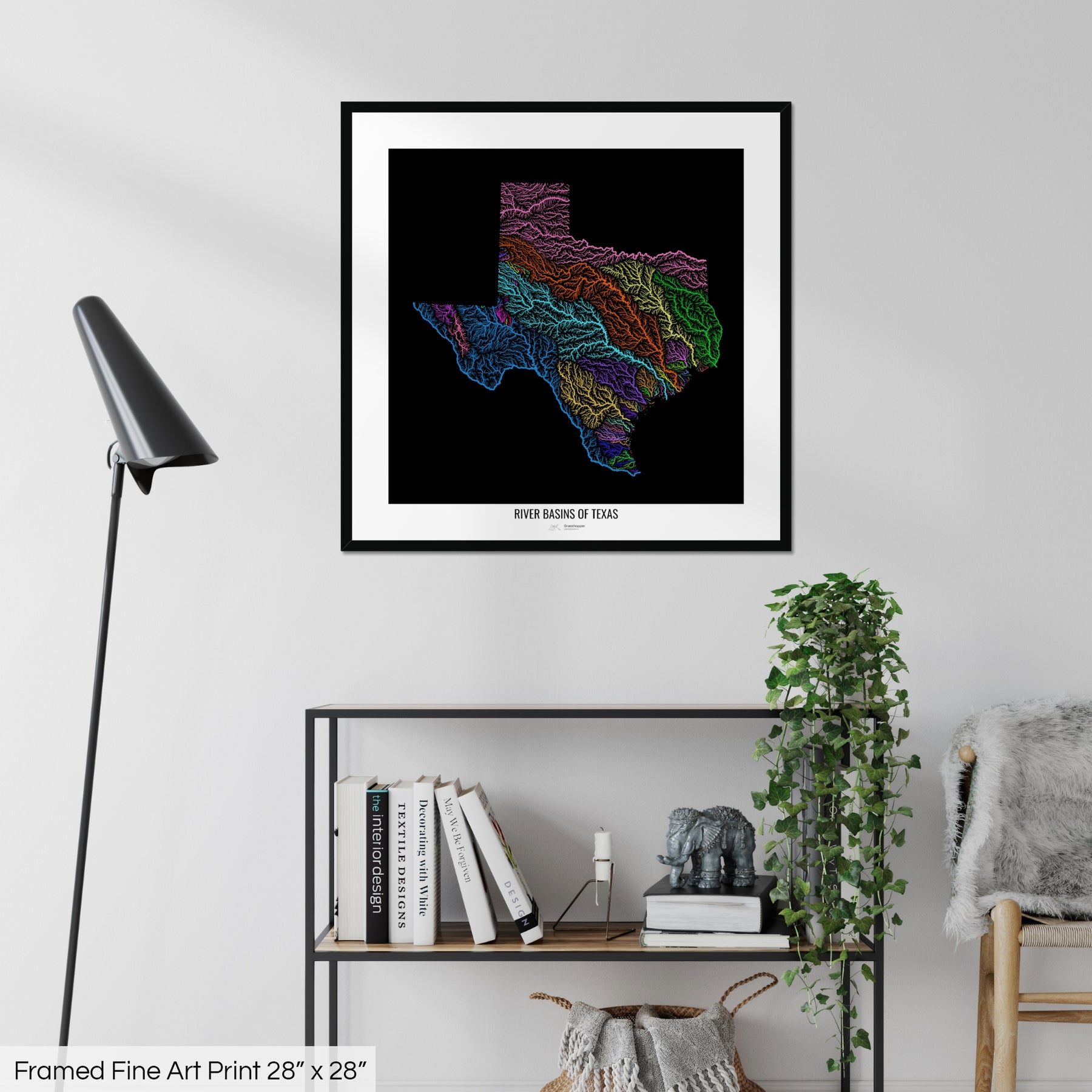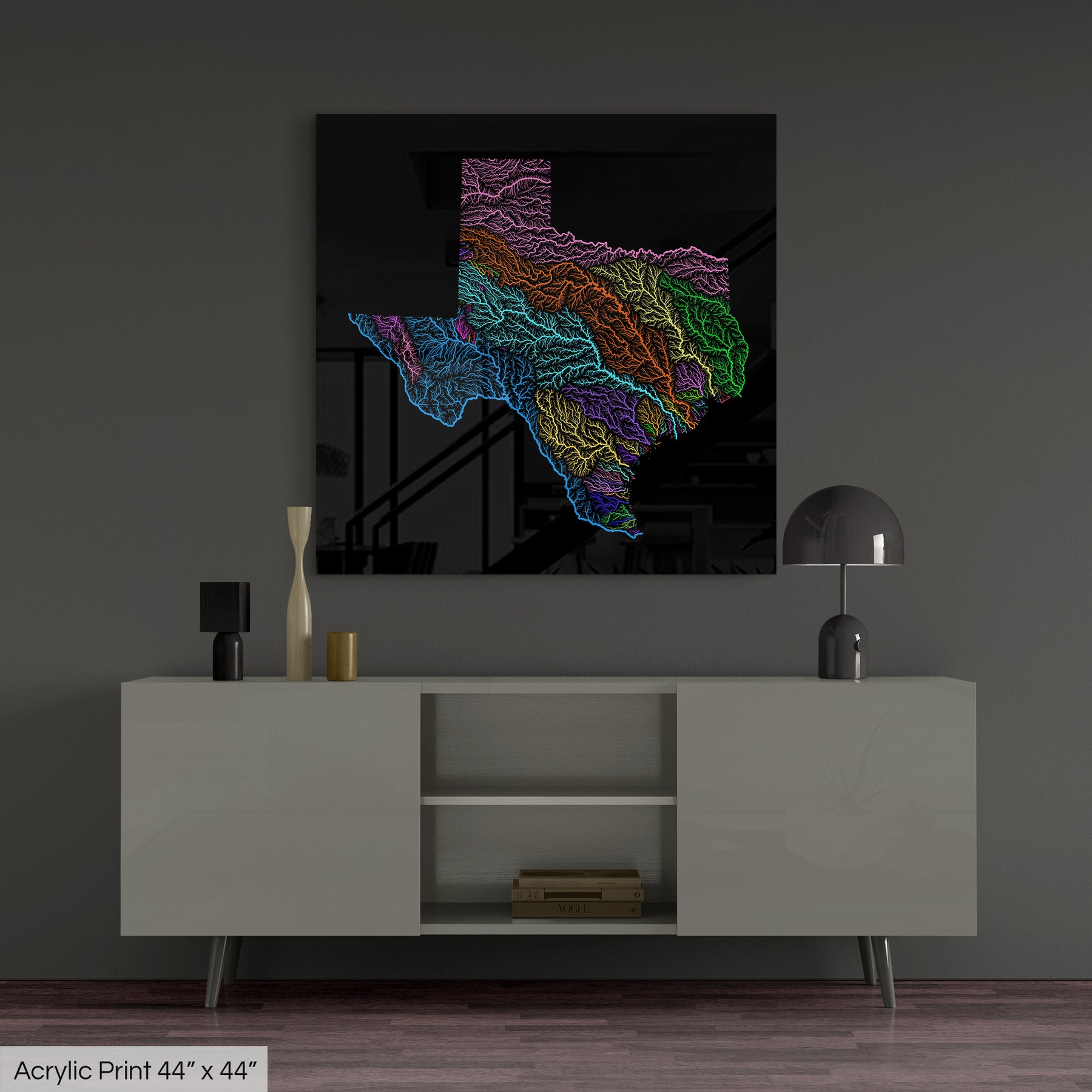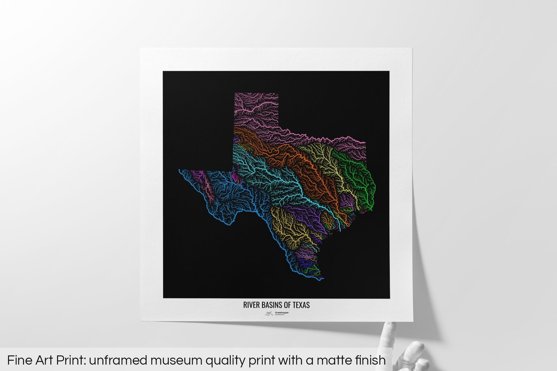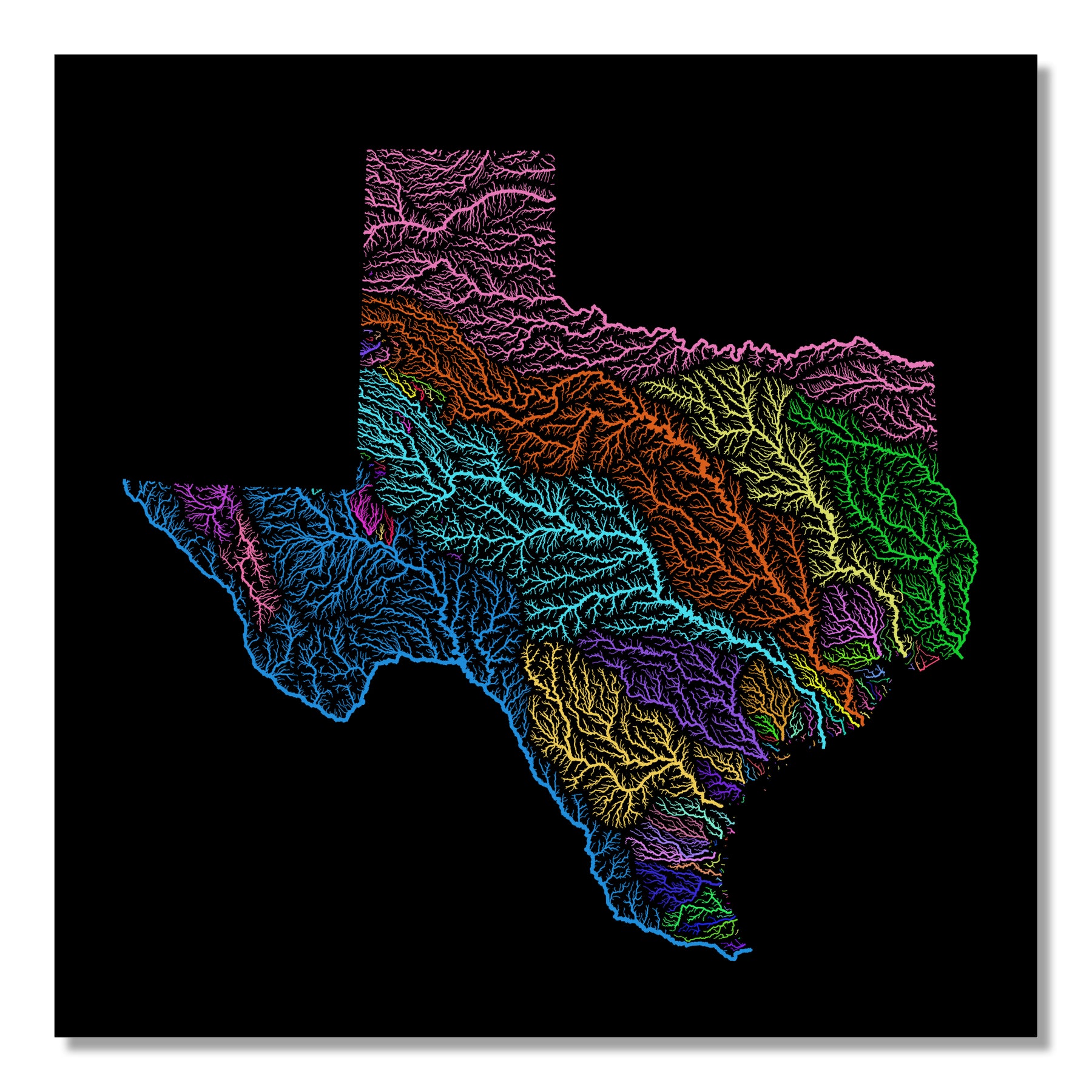 Texas - River basin map, rainbow colours - Wall Art