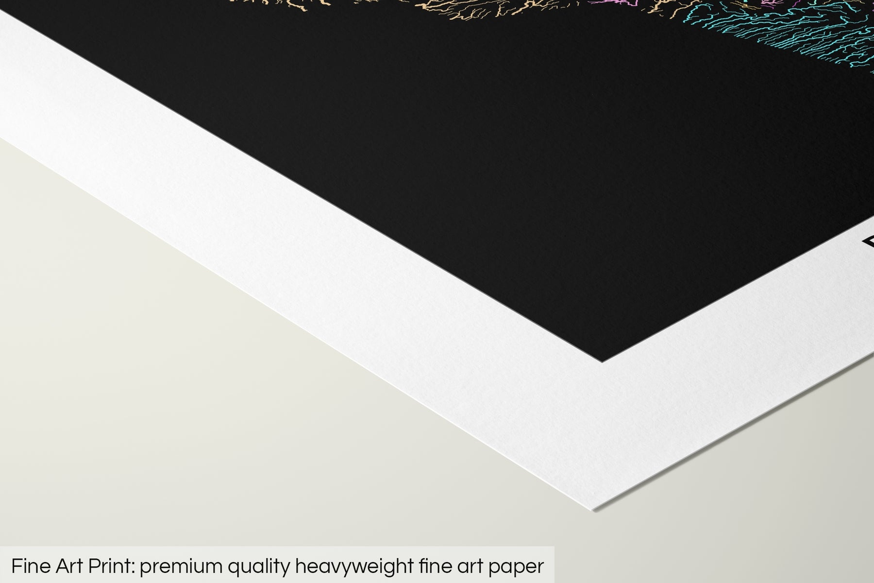 A premium quality heavyweight (200gsm) fine art print material with a smooth, clean finish. This museum-quality paper is remarkably consistent and works perfectly with our colourful maps. The matte finish emphasises different highlights and tones in all of our maps, helping to create stunning works of art.
