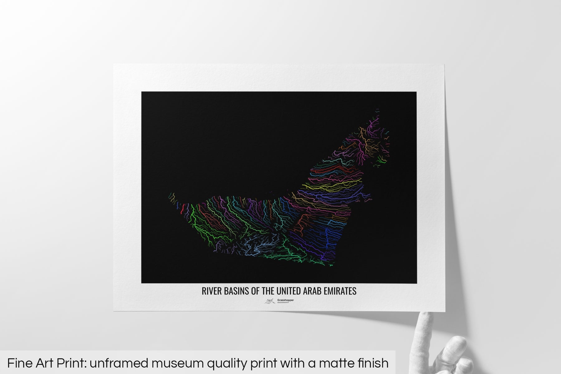 United Arab Emirates - River basin map, rainbow colours - Wall Art