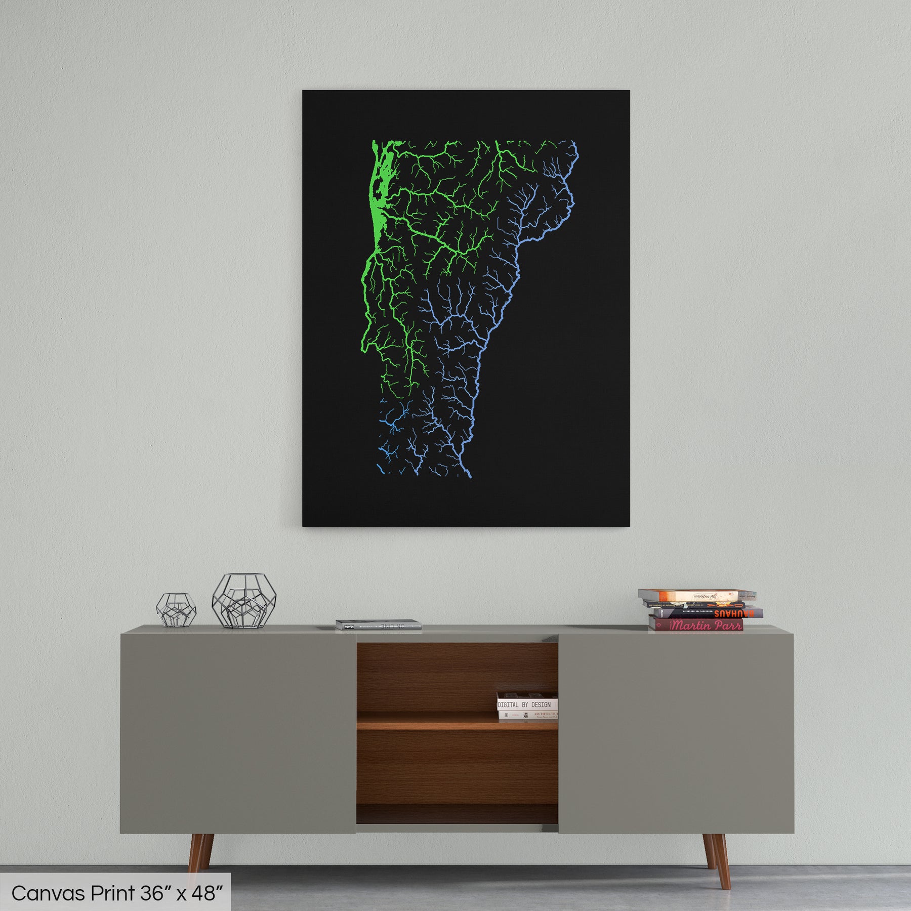 This high-resolution river basin map shows each catchment area in a different colour. Its vibrant colour scheme makes this map a lively addition to any space.