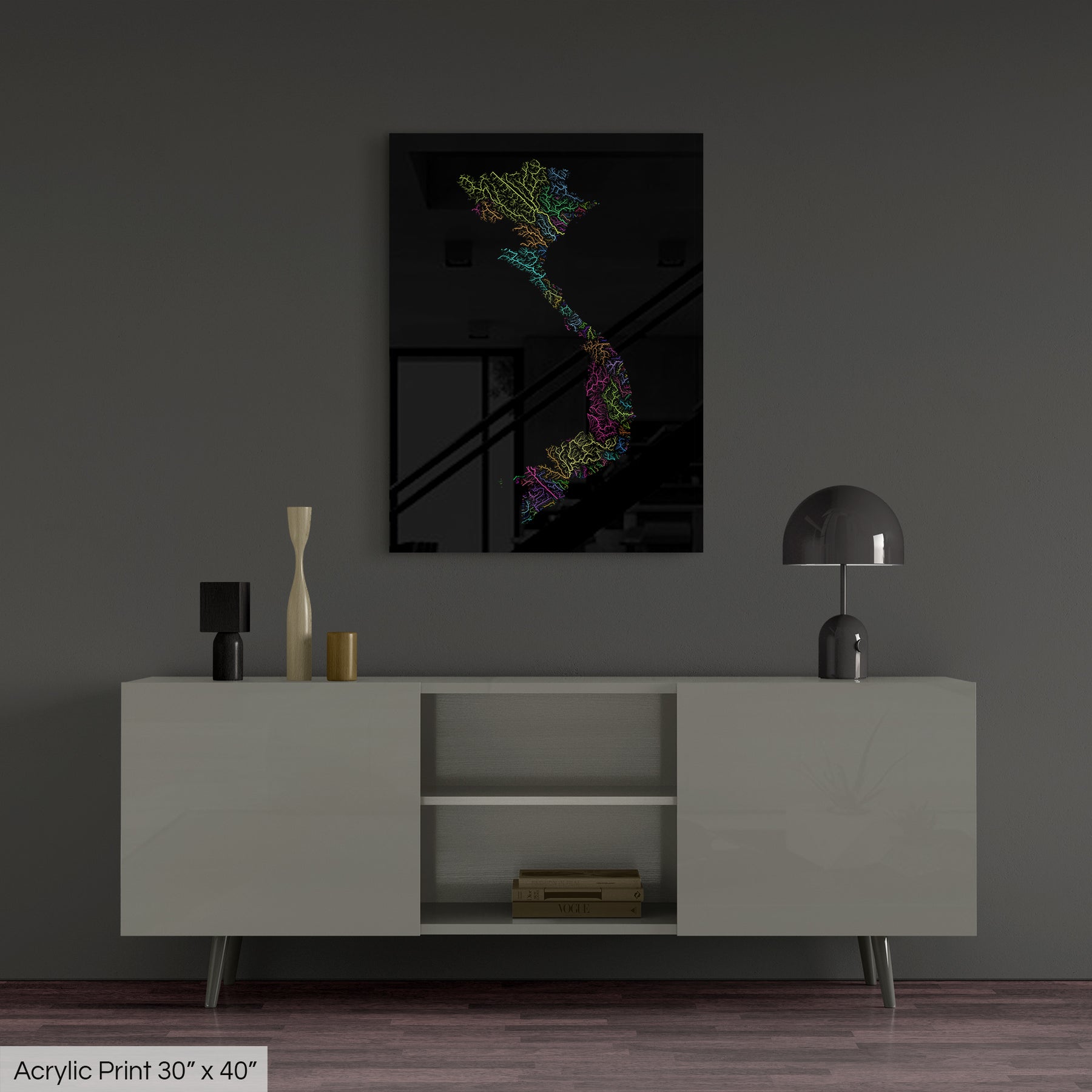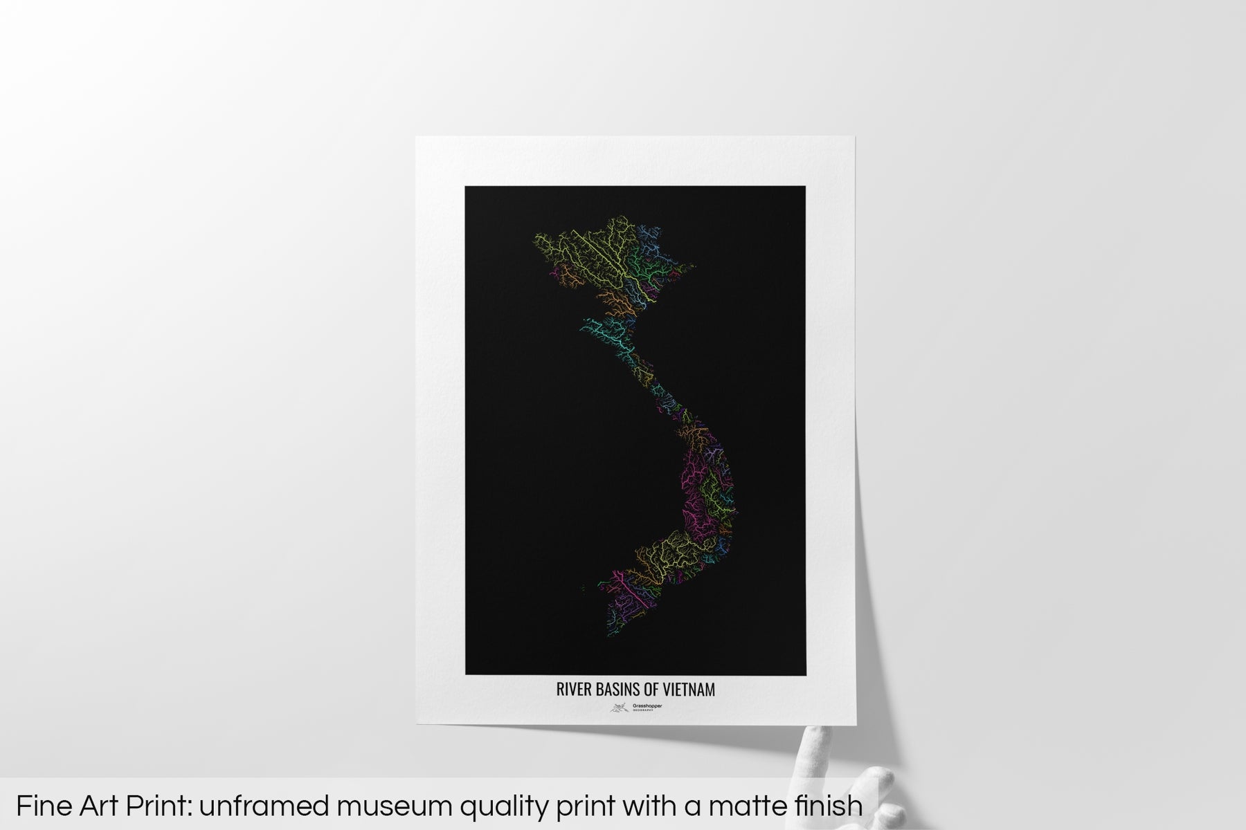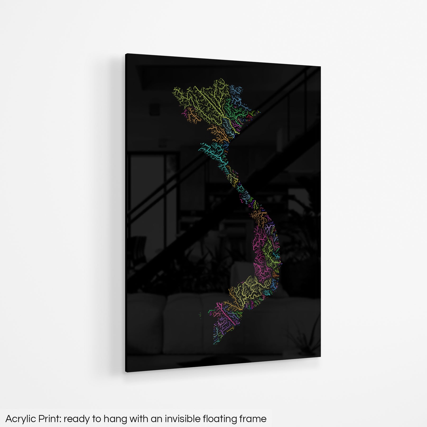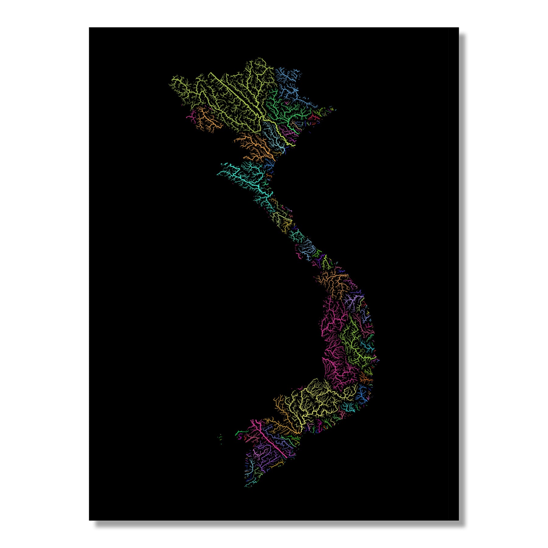 Vietnam - River basin map, rainbow colours - Wall Art