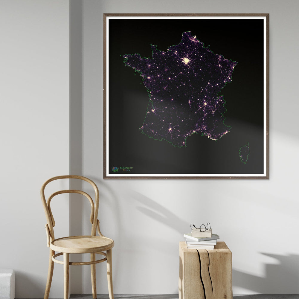 Le papier d'art de qualité muséale révèle des détails complexes, et l'impression Giclée professionnelle garantit les noirs les plus profonds et les couleurs les plus vibrantes. Fabriqués à partir de bois issu de forêts gérées durablement, les cadres sont disponibles dans une gamme de couleurs assorties à votre carte et à votre intérieur.