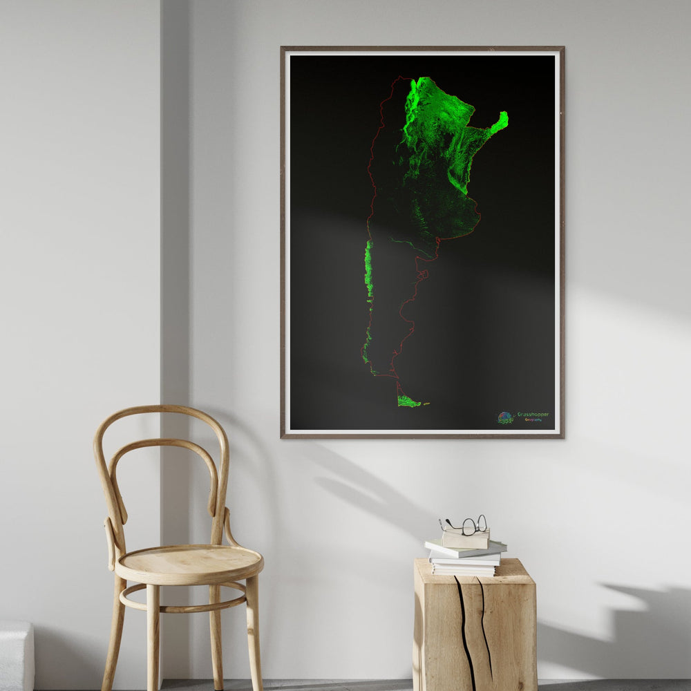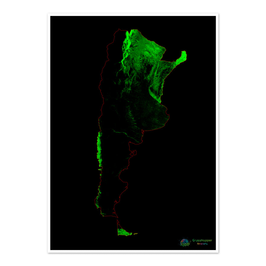 Carte de la couverture forestière de l’Argentine Fine Art Print. Carte du couvert arboré à haute résolution basée sur l'analyse de données satellitaires, avec des capteurs spécifiques conçus pour détecter et reconnaître le reflet de la végétation.
