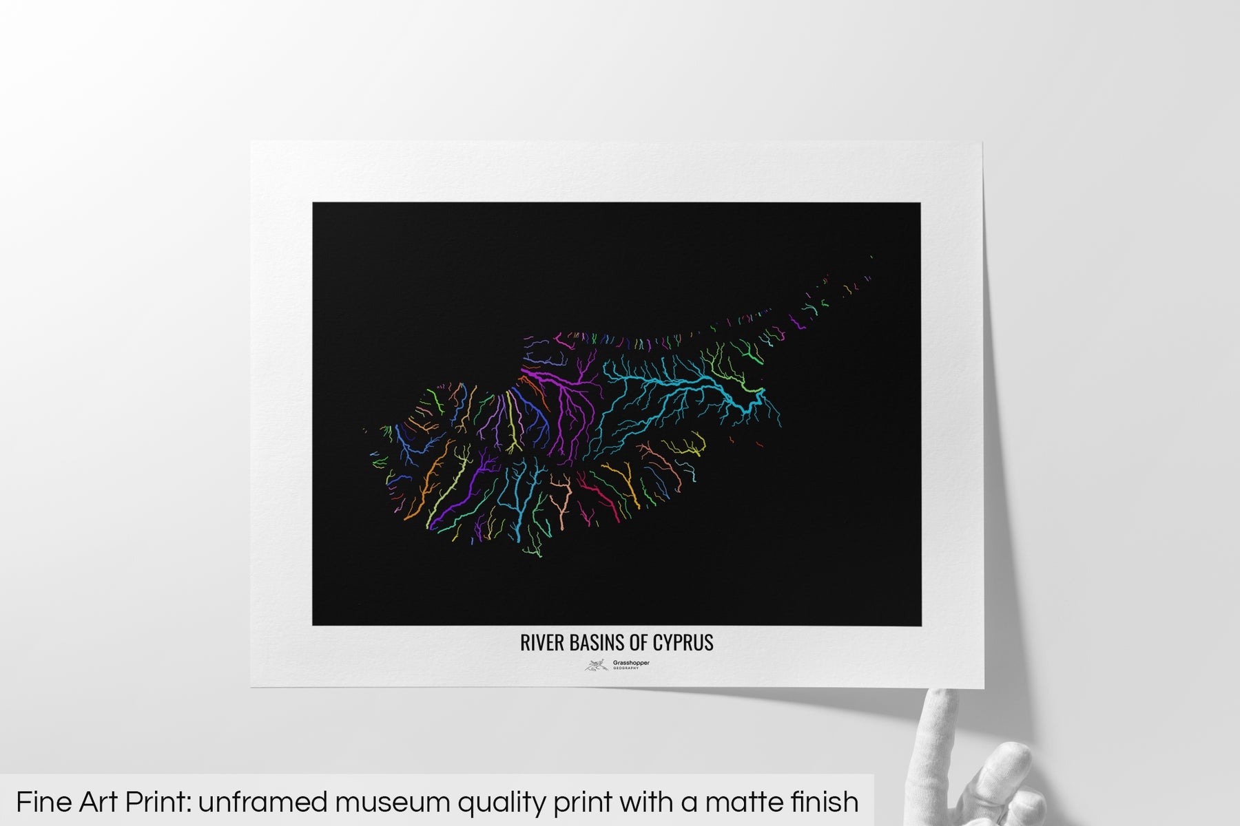 Chypre - Carte des bassins versants, couleurs arc-en-ciel - Décoration murale