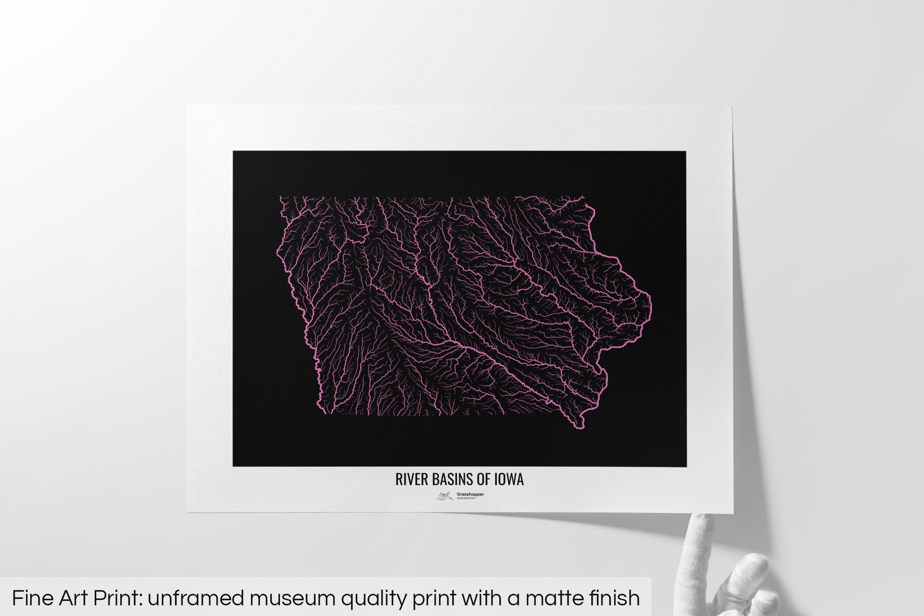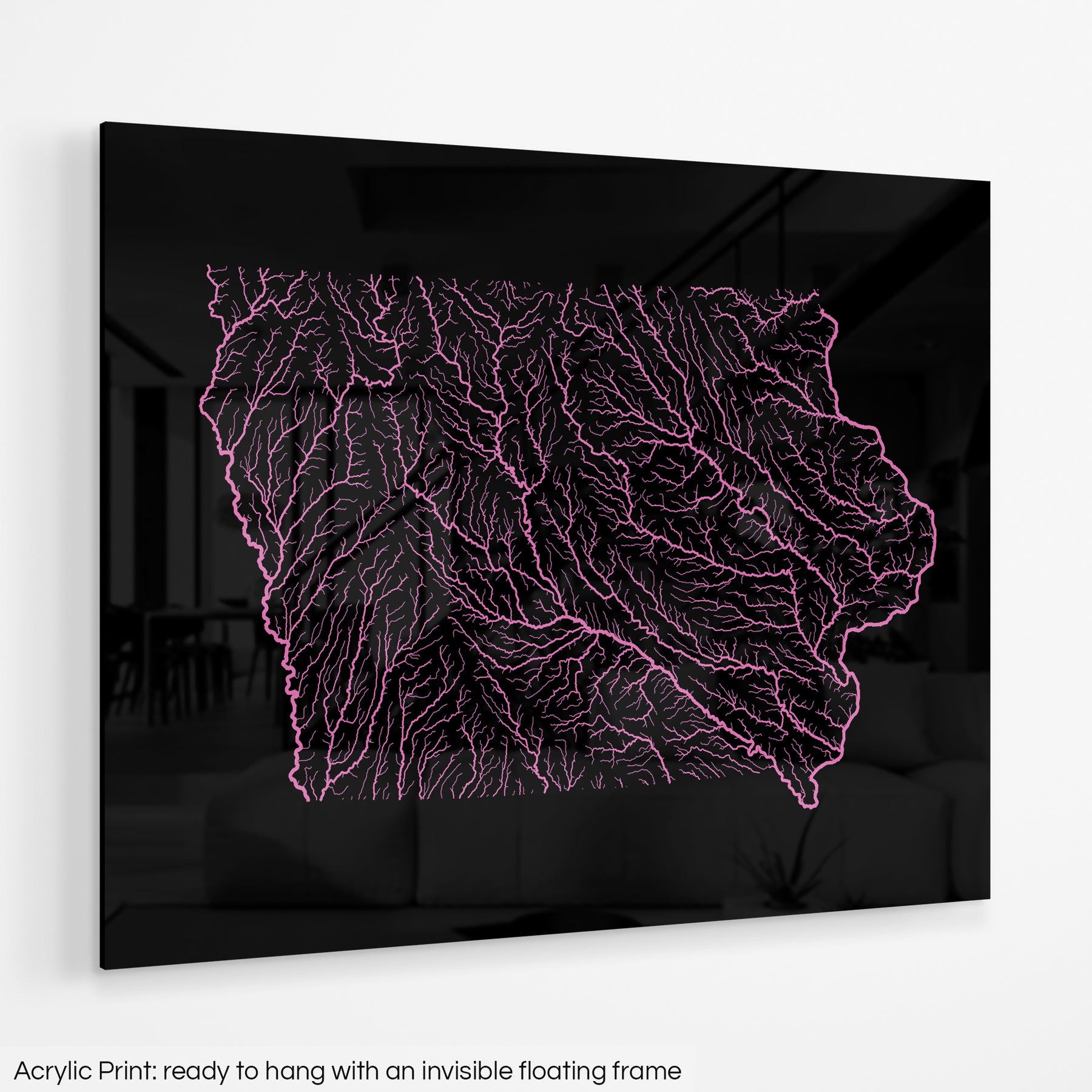 Iowa - Carte du bassin versant, couleurs arc-en-ciel - Décoration murale