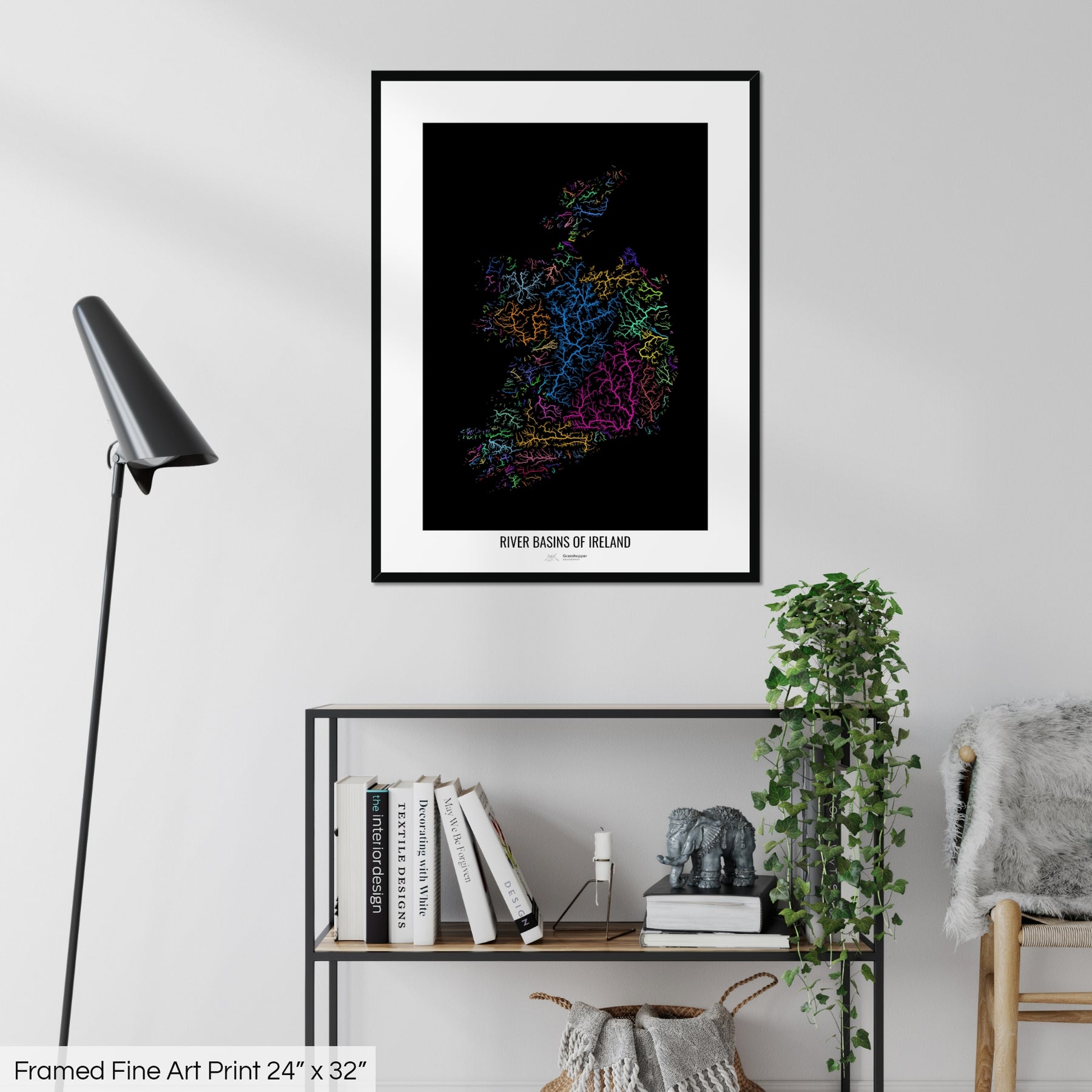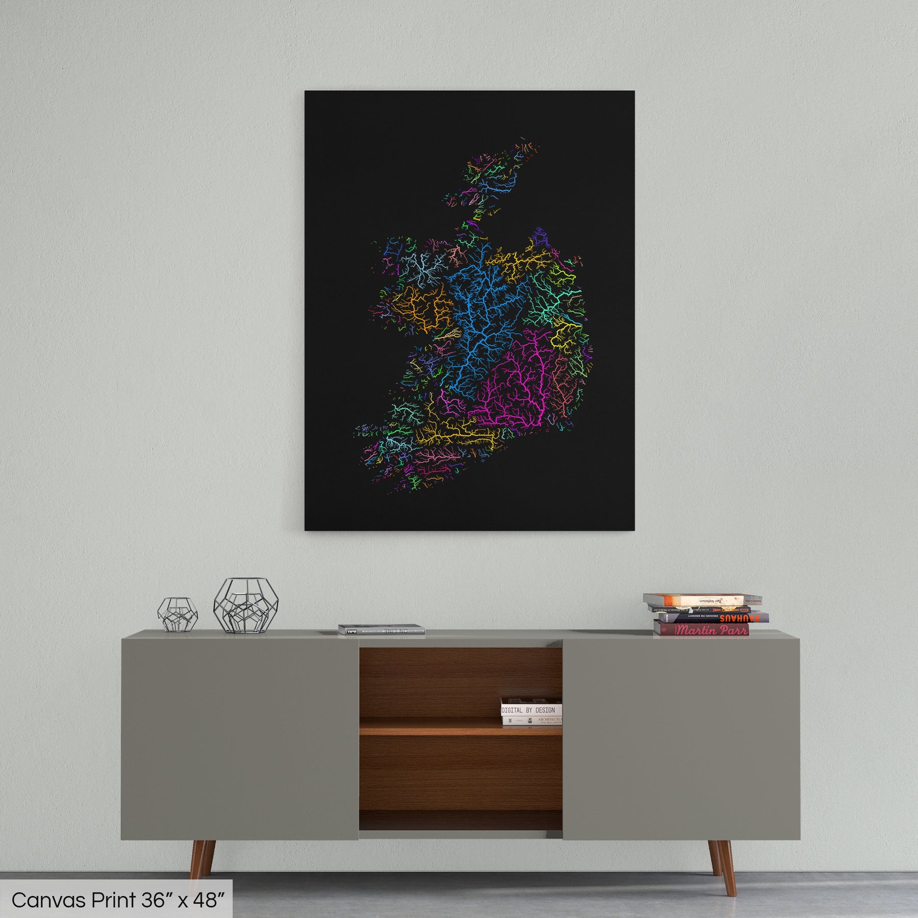Ireland - River basin map, rainbow colours - Wall Art