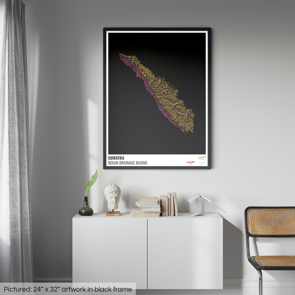 सुमात्रा - महासागर जल निकासी बेसिन मानचित्र, लेजेंड v1 के साथ काला - फ़्रेमयुक्त प्रिंट