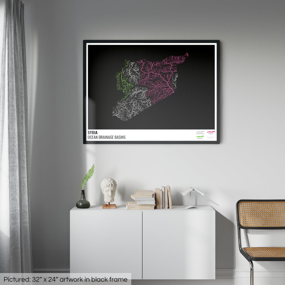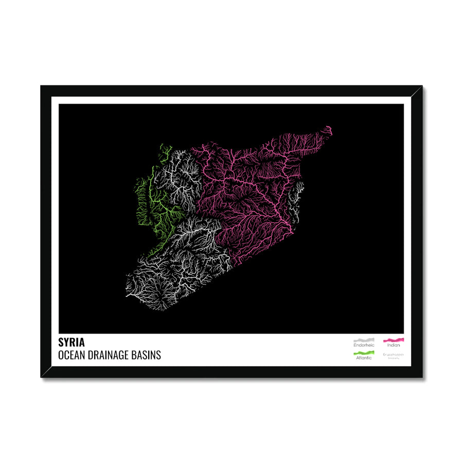 सीरिया - महासागर जल निकासी बेसिन मानचित्र, लेजेंड v1 के साथ काला - फ़्रेमयुक्त प्रिंट