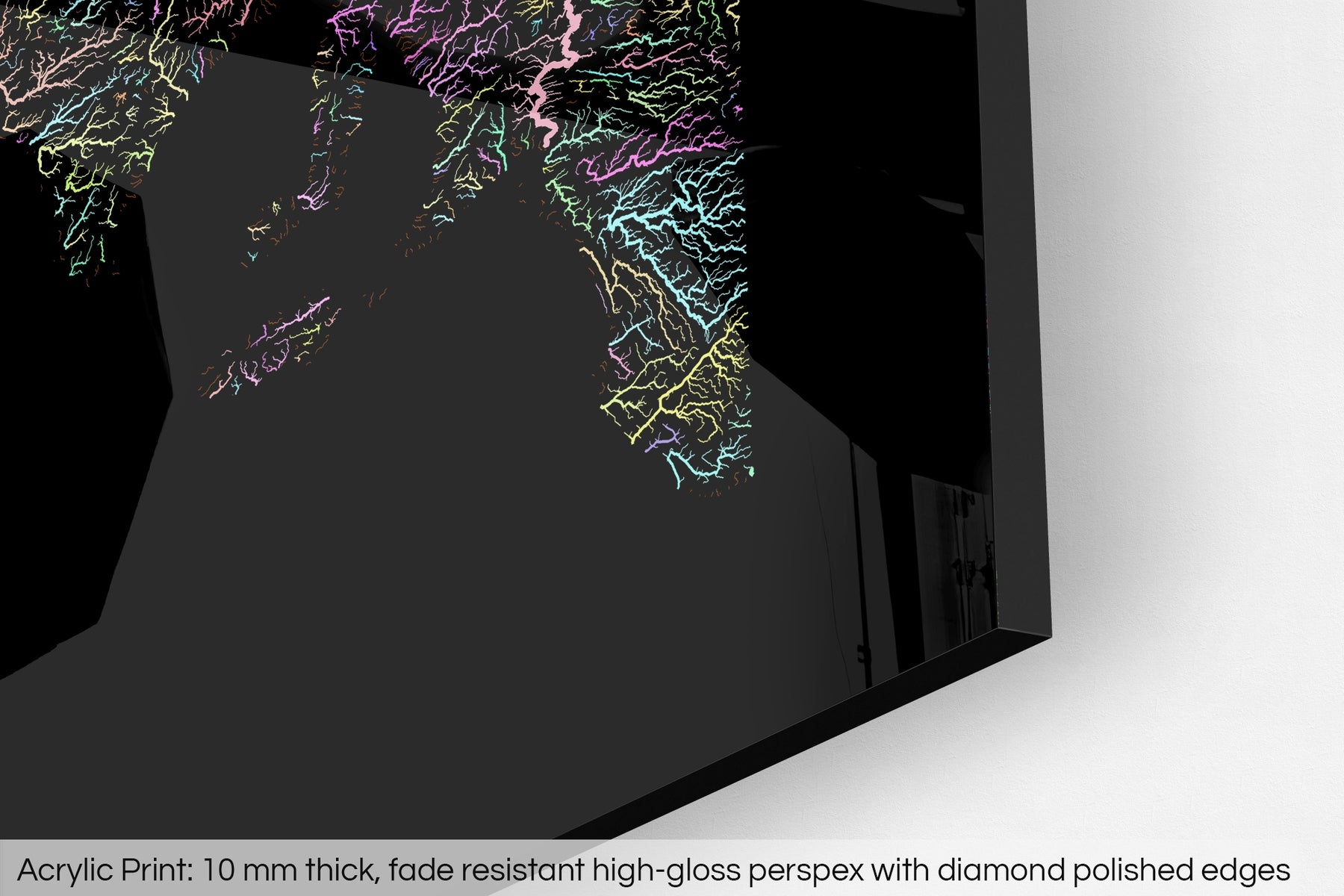 The fine art Giclée print is hand mounted onto a 10mm thick, premium polished, high-gloss acrylic glass that results in a vibrant finish. The transparency of the acrylic enhances the colours and details of the artwork, creating a stunning visual effect that will make a bold statement in any space.