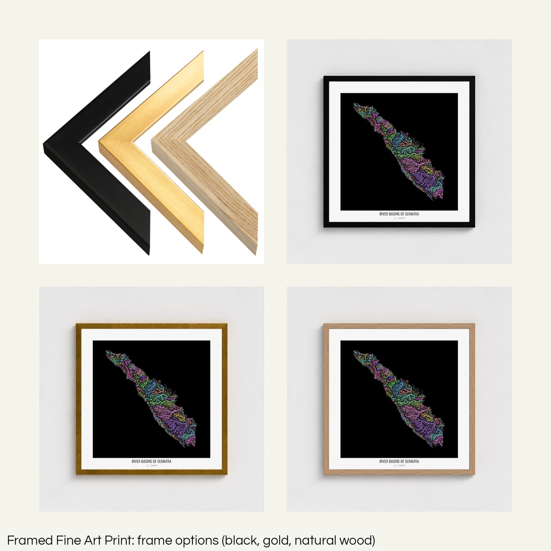 The museum-quality fine art paper exhibits intricate detail, and professional Giclée printing ensures the deepest blacks and the most vibrant colours. Crafted from sustainably sourced wood, the frames are available in a range of colours to match your map and interior.