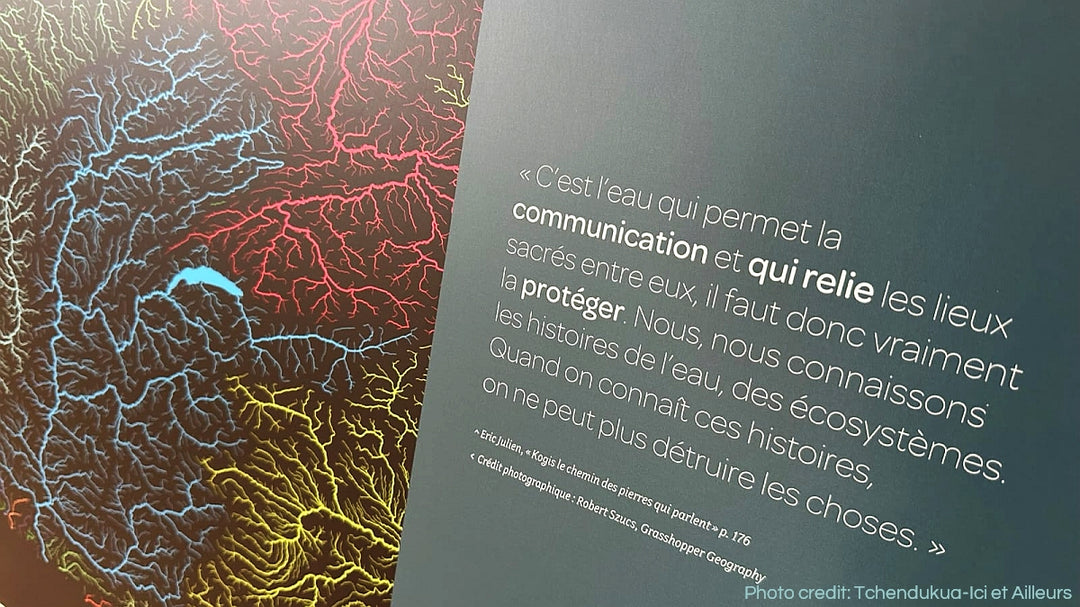 त्चेन्दुकुआ-इसी एट ऐलेर्स एक फ्रांसीसी गैर सरकारी संगठन है जो सिएरा नेवादा डी सांता मार्टा, कोलंबिया के स्वदेशी लोगों के साथ काम करता है ताकि उन्हें अपनी पैतृक भूमि को पुनः प्राप्त करने और जैव विविधता को पुनर्जीवित करने में मदद मिल सके। उन्होंने अपनी प्रस्तुतियों के लिए हमारे यूरोपीय वाटरशेड मानचित्र और रोन के एक कस्टम मानचित्र का उपयोग करना चुना।