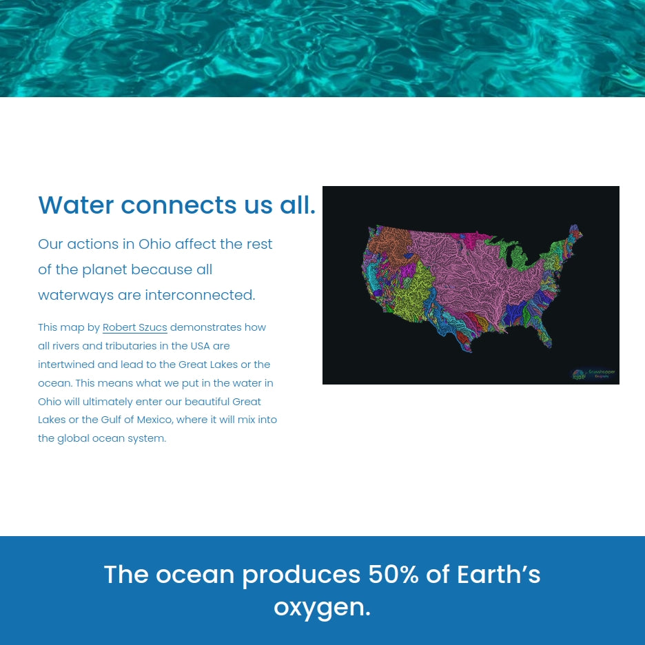 ओहियो महासागर फाउंडेशन का मिशन ओहियो और वैश्विक महासागर स्वास्थ्य के बीच संबंध के बारे में जागरूकता बढ़ाना है। उनके मिशन के बारे में उनके पेज पर हमारा यू.एस. नदी मानचित्र प्रदर्शित है।