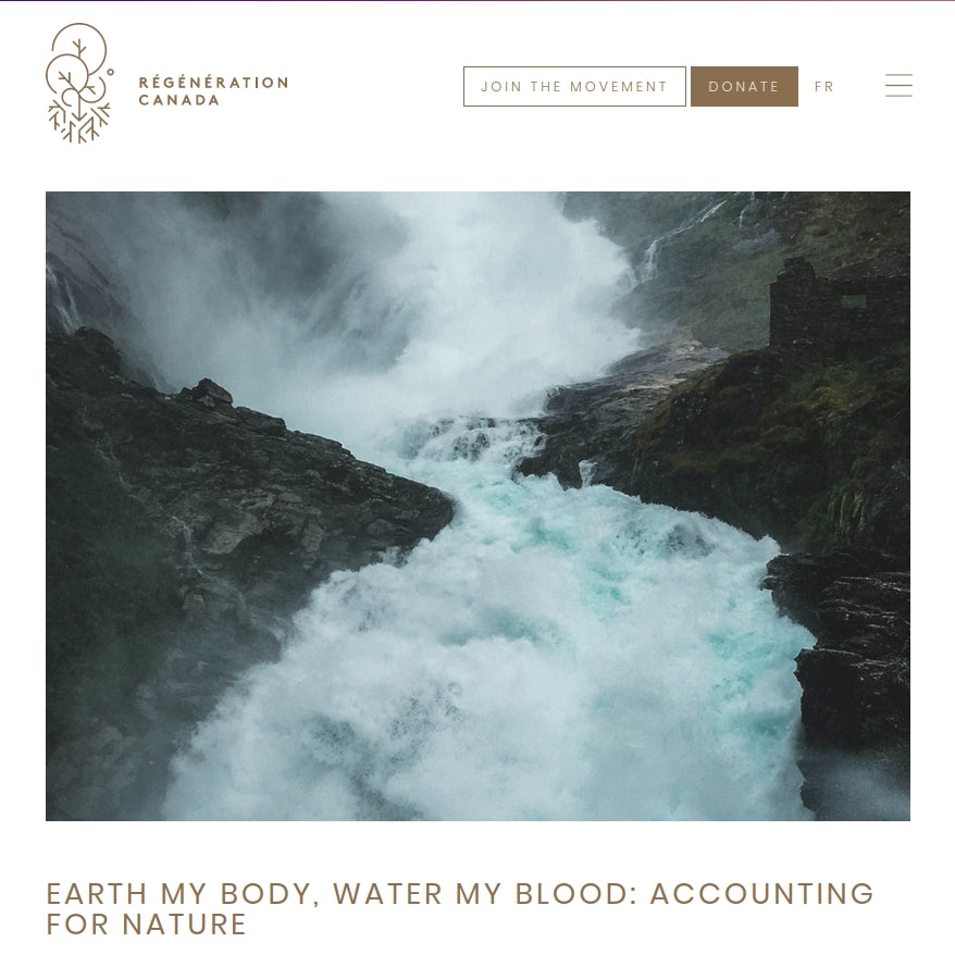 रीजनरेशन कनाडा कनाडा में मिट्टी के पुनर्जनन को बढ़ावा देता है। आनंदा फिट्ज़सिमन्स ने अपने लेख " पृथ्वी मेरा शरीर, जल मेरा रक्त: प्रकृति के लिए लेखांकन " और अपनी पुस्तक हाइड्रेट द अर्थ: जलवायु संकट में जल की भूली हुई भूमिका में हमारे मानचित्र का उपयोग किया है।