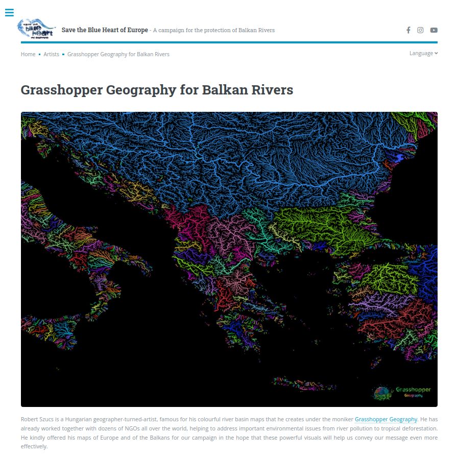 रिवरवॉच और यूरोनेचर ने बाल्कन के हमारे नदी बेसिन मानचित्र और हमारे कस्टम-निर्मित वजोसा नदी मानचित्र का उपयोग अपने अंतर्राष्ट्रीय अभियान यूरोप के ब्लू हार्ट को बचाओ में बाल्कन में मुक्त बहने वाली नदियों के महत्व को दर्शाने के लिए किया है।