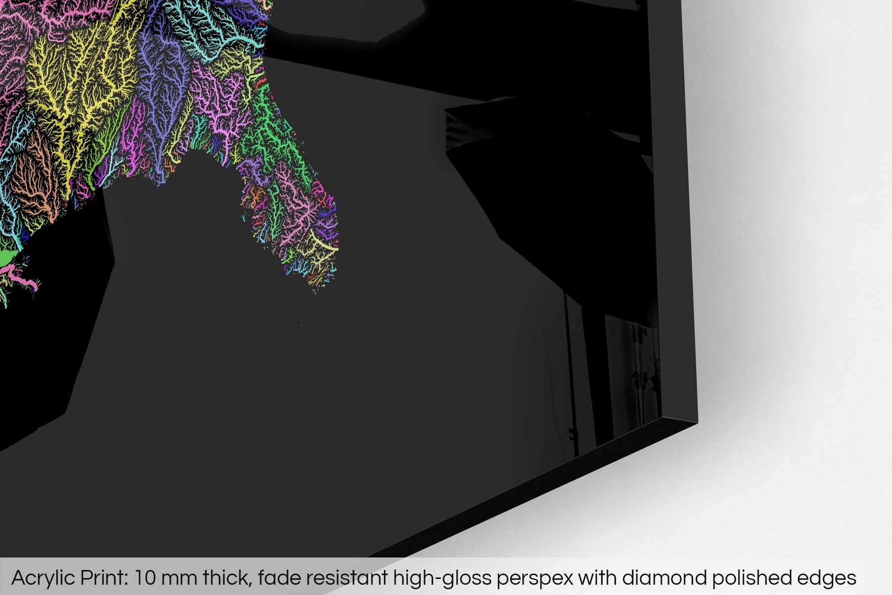 The fine art Giclée print is hand mounted onto a 10mm thick, premium polished, high-gloss acrylic glass that results in a vibrant finish. The transparency of the acrylic enhances the colours and details of the artwork, creating a stunning visual effect that will make a bold statement in any space.