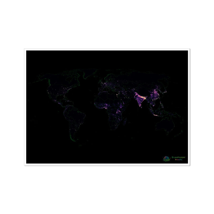 カスタム世界人口密度ロビンソン投影ファインアートプリント