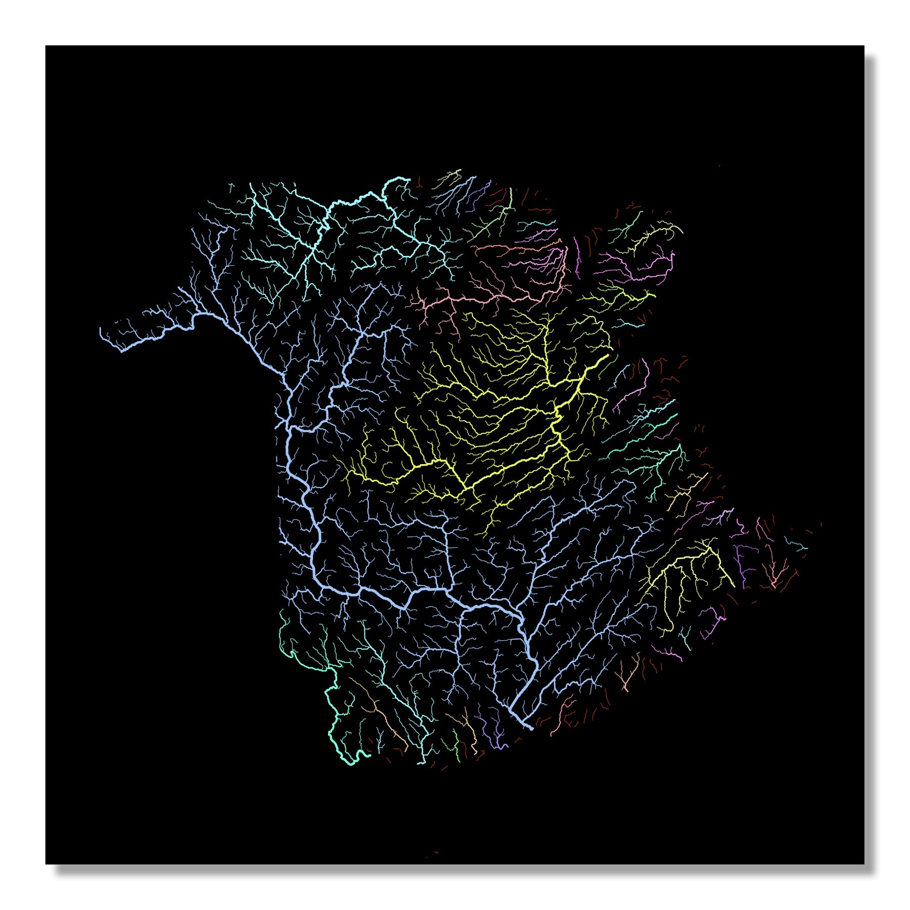 New Brunswick - River basin map, pastel colours - Wall Art