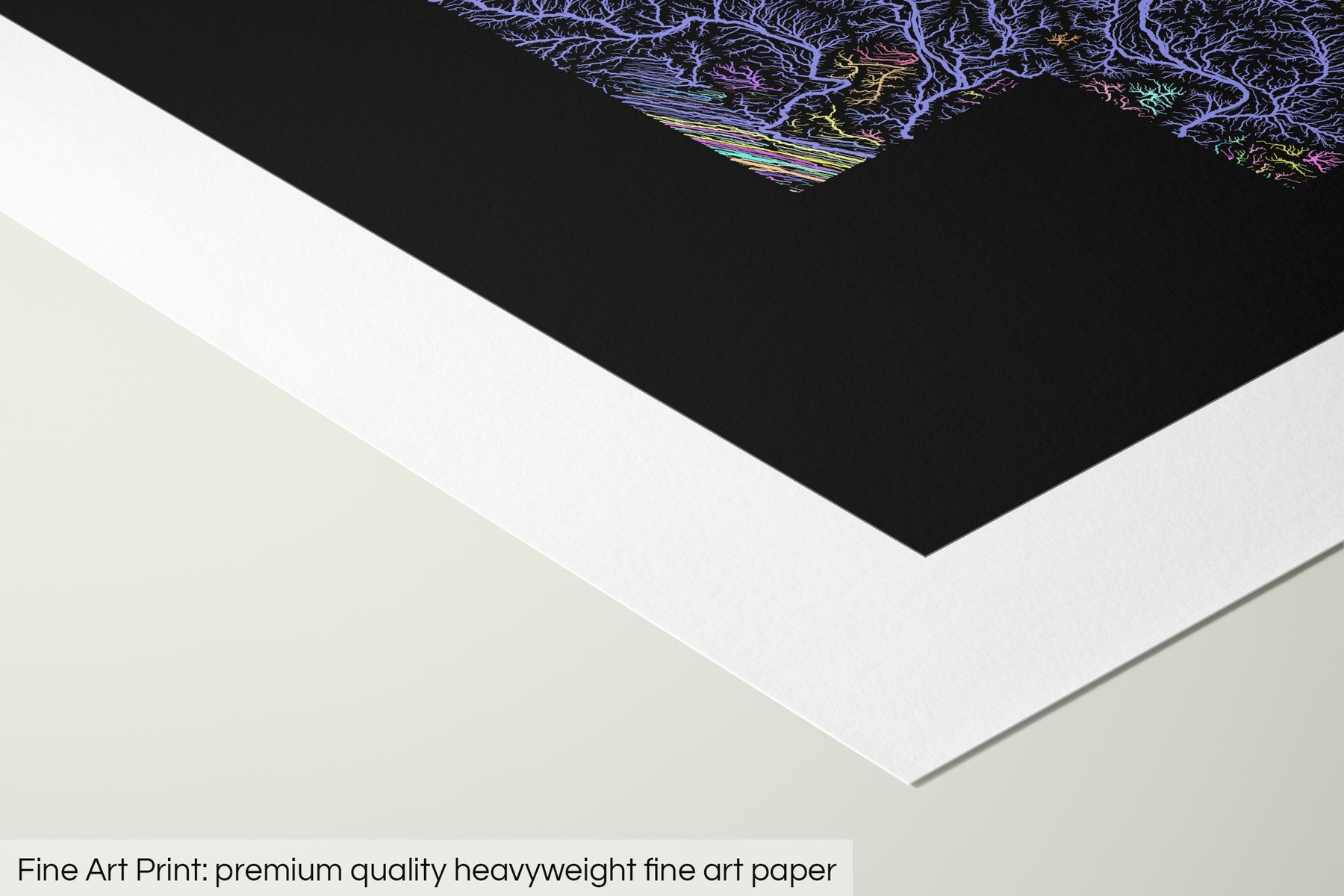 The museum-quality fine art paper exhibits intricate detail, and professional Giclée printing ensures the deepest blacks and the most vibrant colours. Crafted from sustainably sourced wood, the frames are available in a range of colours to match your map and interior.