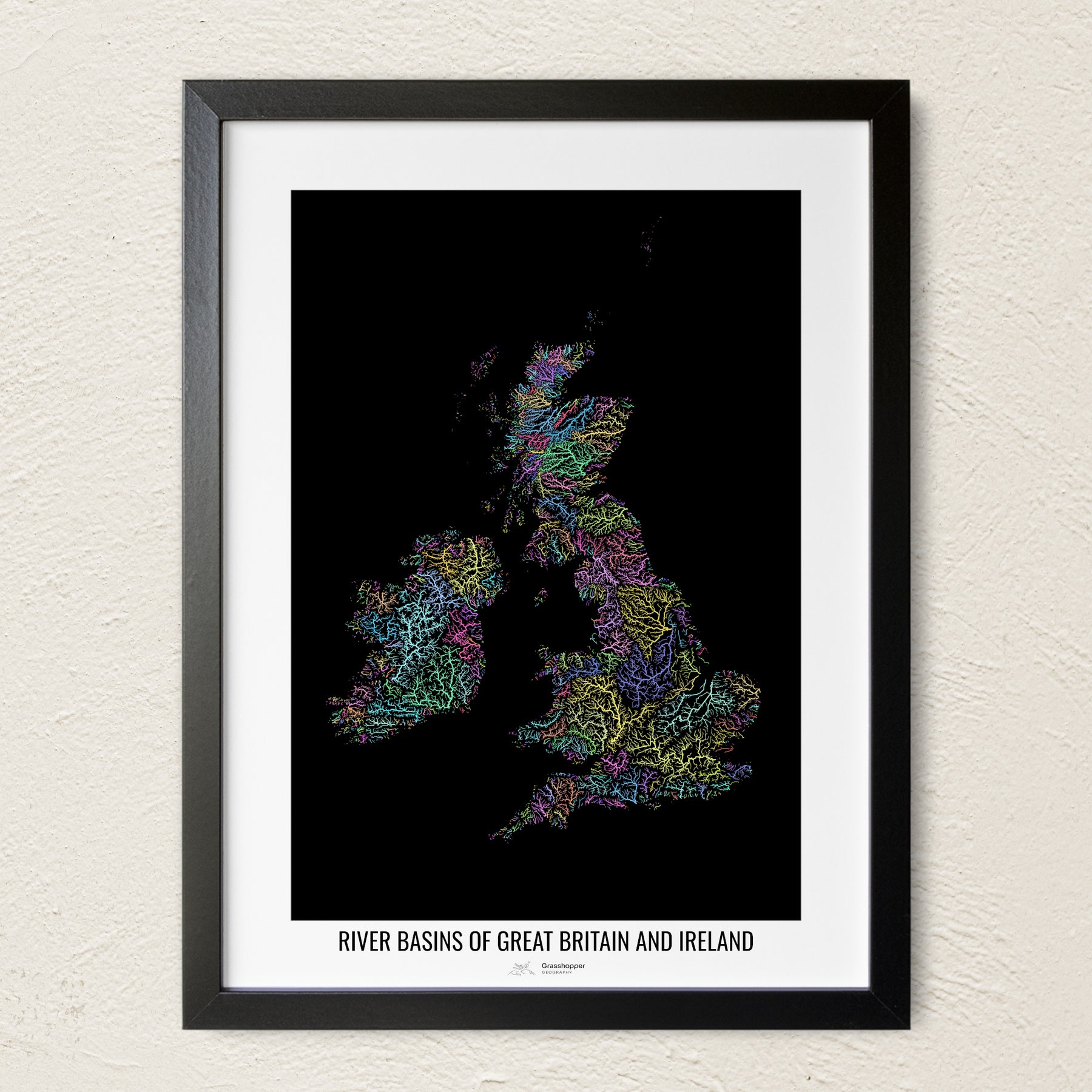 Great Britain and Ireland - River basin map, pastel colours - Wall Art