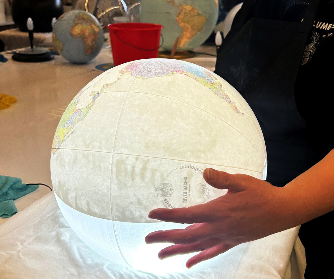 A long and collaborative effort started, that included a personal visit to the Columbus Workshop in Krauchenwies, Germany in October 2022. From the mapmaker's side, creating a product so different than anything they've worked with before came with many unexpected challenges. Fine tuning every small detail on the globes took hundreds of hours of work from both sides, but seeing the final products there is no question it was worth every minute of it.