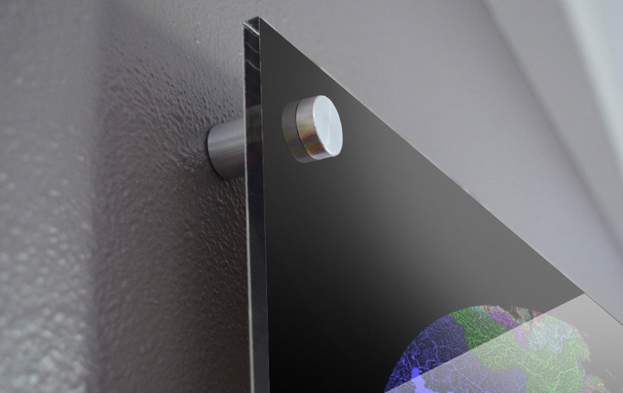 Printed to the edge & ready to hang, either with a floating frame on the back or with 4 premium polished aluminum standoffs.