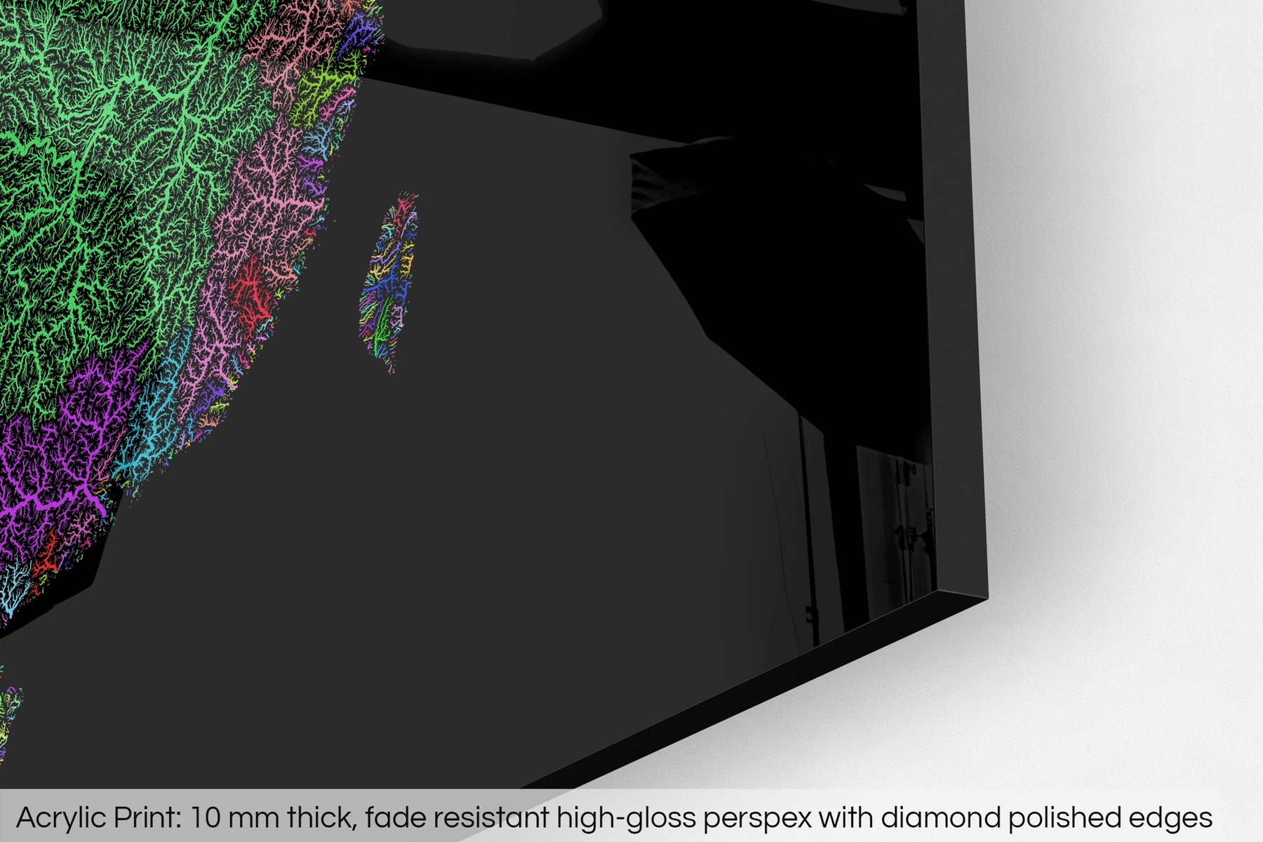 A fine art Giclée print is hand mounted onto 10mm thick high-gloss acrylic perspex that will protect your map from harmful UV light, keeping colours fresh and vivid for years to come.