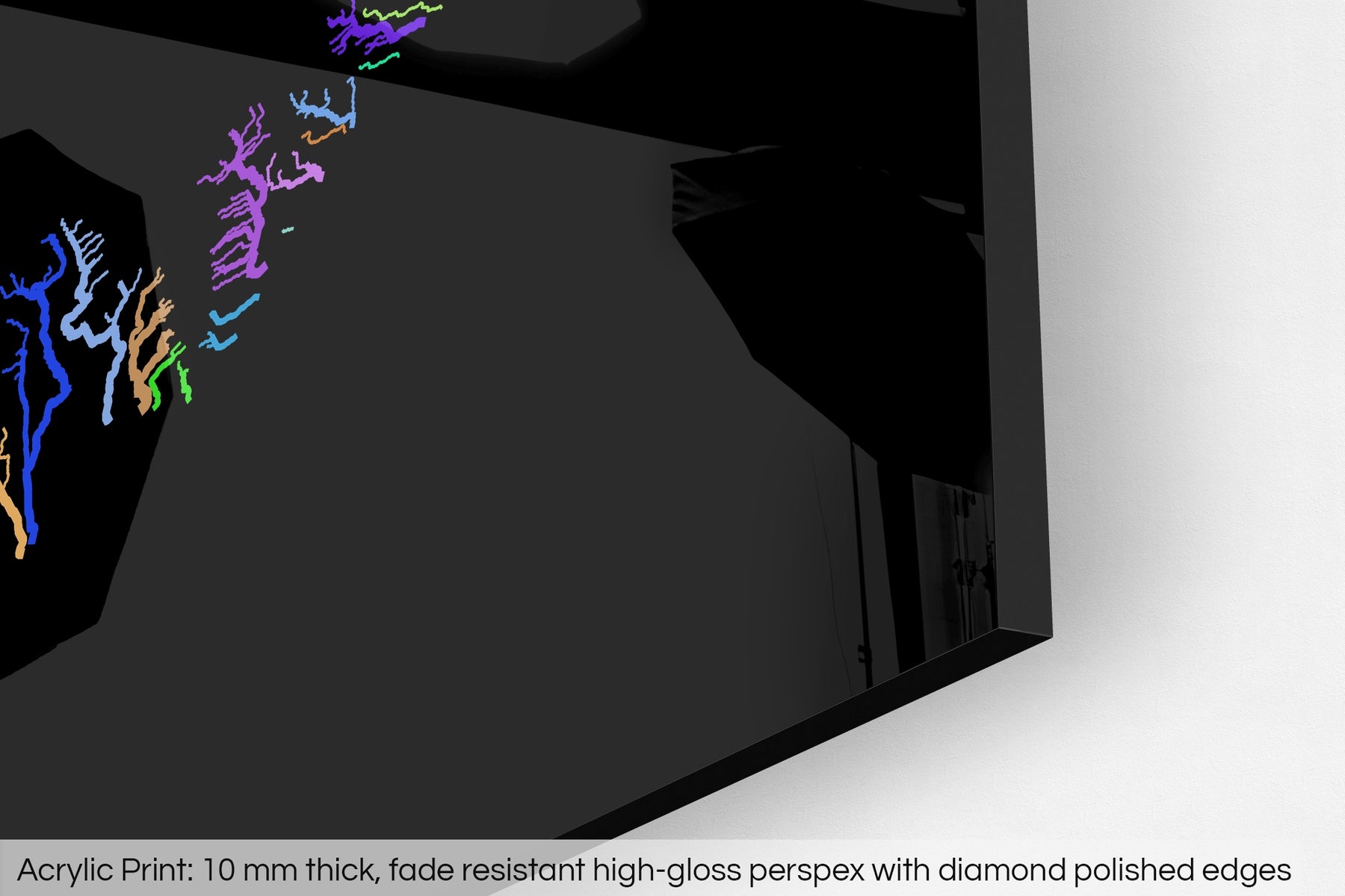 A fine art Giclée print is hand mounted onto 10mm thick high-gloss acrylic perspex that will protect your map from harmful UV light, keeping colours fresh and vivid for years to come.